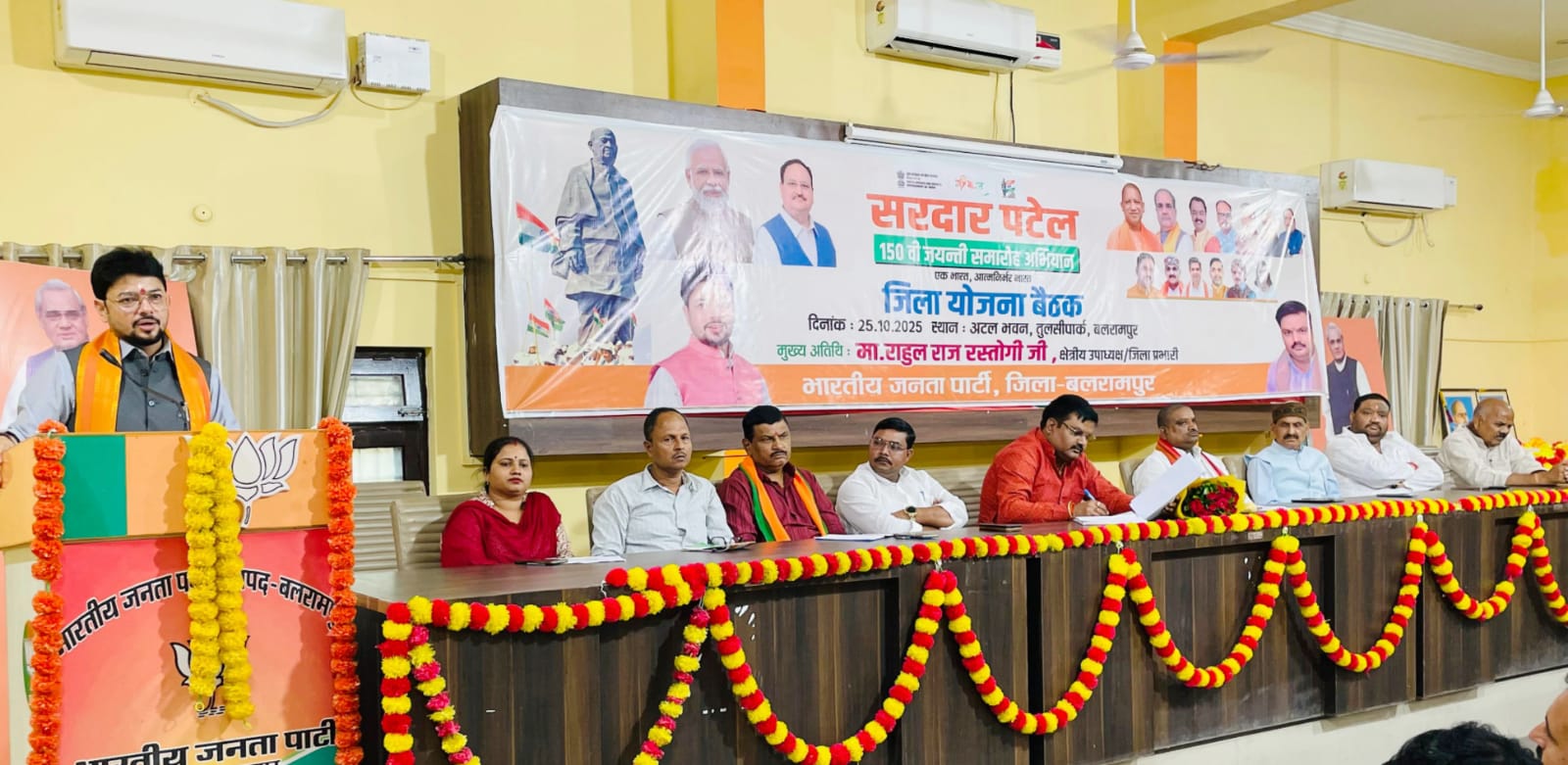 बैठक में सरदार पटेल की 150वीं जयंती को भव्य रूप से मनाने हेतु बूथ स्तर तक कार्यक्रमों की रूपरेखा तैयार की गई। जिलाध्यक्ष रवि कुमार मिश्र ने बताया कि प्रत्येक बूथ पर “रन फॉर यूनिटी” का आयोजन किया जाएगा तथा कार्यकर्ता सरदार पटेल के चित्र पर पुष्पांजलि अर्पित कर उनके जीवन एवं योगदान पर चर्चा करेंगे। उन्होंने कहा कि लौहपुरुष सरदार पटेल ने देश की एकता और अखंडता के लिए जो कार्य किया,वह सभी के लिए प्रेरणास्रोत है।