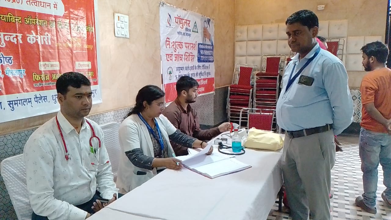 इस दौरान एसोसिएशन के नए पदाधिकारी को कार्ड देकर सम्मानित किया गया। नगर के धुंधी कटरा बिन्नानी धर्मशाला में आयोजित स्वास्थ्य शिविर में डेढ़ सौ से 200 गरीब असहाय लाचार पीड़ित व्यक्ति जो आंख से परेशान और शुगर, बीपी से परेशान रहे हैं उन सभी लोगों का जांच किया गया। चिन्हित लोगों को मोतियाबिंद ऑपरेशन के लिए चित्रकूट श्री सद्गुरु सेवा संघ ट्रस्ट को रेफर किया गया। कार्यक्रम में शुगर, बीपी का जांच वह वेट का जांच भी किया गया सुबह 9 से दोपहर 2 तक लोगों शिविर में जांच किया गया।