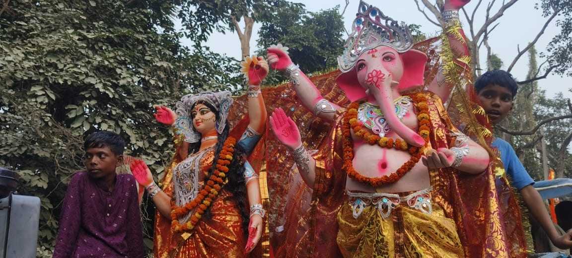 आजमगढ़ जिले के फूलपुर तहसील के नगर और ग्रामीण क्षेत्रों में बुधवार को स्थापित लक्ष्मी गणेश की प्रतिमा को विसर्जित किया गया । इस दौरान भक्तिमय जयकारें से पूरा क्षेत्र गूँज उठा । नगर पंचायत माहुल स्थित शुक्र बाजार में स्थापित लक्ष्मी गणेश की प्रतिमा का विसर्जन धूम धाम से किया गया । फूलपुर कोतवाली प्रभारी निरीक्षक सच्चिदानंद ने कहा कि फूलपुर कोतवाली क्षेत्र में कुल कुल 54 लक्ष्मी गणेश की प्रतिमाएं स्थापित किया गया था । फूलपुर नगर में 14 जगहो पर लक्ष्मी गणेश की प्रतिमा स्थापित की गई थी । फूलपुर कोतवाली की 42 प्रतिमाओं का विसर्जन बुधवार को किया गया हैं । माहुल नगर पंचायत में स्थापित लक्ष्मी गणेश की प्रतिमा को भ्रमण कराया गया । डीजे के धुन पर भक्त श्रद्धालु नाचते गाते चल रहे थे । विसर्जन का जुलूस माहुल के शुक्र बाजार से शुरू हुआ । शुक्र बाजार ,तिराहा टैनी मोड़ ,शंकर जी तिराहा, बजरंग चौक ,शिवाजी मेंन चौक,पूरे माया पांडे तिराहा, सोमवारी बाजार ,बैजनाथ पोखरा, शंकर मंदिर रामूगंज दखिंनगावा, होते हुए नदी में विसर्जन किया गया । लक्ष्मी गणेश पूजा समिति माहुल के द्वारा हजारों भक्तों में प्रसाद वितरण किया गया । वही फूलपुर नगर में 42 स्थानों की मूर्ति का विसर्जन धूमधाम से गांजे बाजे के साथ किया गया । विसर्जन के दौरान पुलिस बल तैनात रहा । इस अवसर पर भाजपा नेता सुजीत जायसवाल आशु, अमित अग्रहरि ,अतुल मोदनवाल, दीपू अग्रहरि, शिवम शर्मा ,बेचू अग्रहरि, संतोष सोनी ,विनय अग्रहरि, सतीश राजभर ,सनी सोनी, राजू सोनकर ,कमलेश अग्रहरि, विकास मौर्य आदि लोग रहे ।