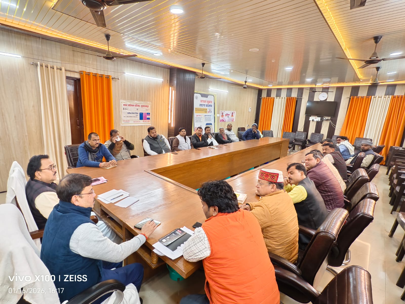 आज नगर पालिका सभाकक्ष में (S.I.R.) विशेष गहन पुनरीक्षण 2026 की एकीकृत आलेख्य मूल निर्वाचक नामावली के प्रकाशन उपरान्त नगर क्षेत्र के समस्त बूथों की मतदाता सूची पर सभासदगण के साथ चर्चा परिचर्चा हेतु नगर पालिका अध्यक्ष प्रवीन कुमार अग्रवाल की अध्यक्षता व अधिशासी अधिकारी लाल चन्द्र सरोज के संयोजन में बैठक आहूत की गयी।