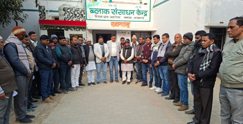 आजमगढ़। बी आर सी कार्यालय अहरौला पर मंगलवार को शिक्षा क्षेत्र के शिक्षकों ने दो मिनट का मौन रखकर सड़क दुघर्टना में मृत शिक्षक साथी को श्रद्धासुमन अर्पित किया।