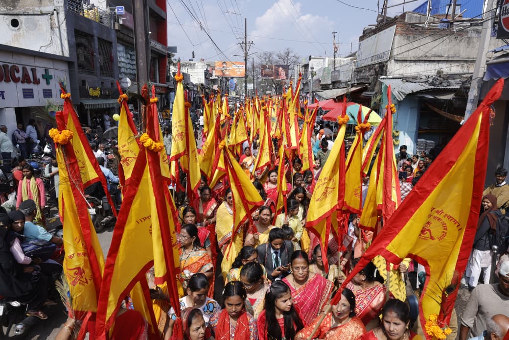 हजारीबाग - श्याम भक्त परिवार हजारीबाग के द्वारा मंगलवार को श्री श्याम फाल्गुन निशान ध्वज यात्रा का भव्य एवं ऐतिहासिक आयोजन श्रद्धा, उत्साह और भक्ति के अद्भुत संगम के साथ संपन्न हुआ मालवीय मार्ग स्थित नवनिर्मित श्याम मंदिर परिसर से आरंभ हुई यह दिव्य शोभायात्रा पूरे शहर में भक्ति की अलख जगाती हुई विभिन्न प्रमुख मार्गों एवं चौक-चौराहों से होकर पुनः मंदिर परिसर पहुंची, जहां आरती एवं प्रसाद वितरण के साथ कार्यक्रम का समापन किया गया। कार्यक्रम का शुभारंभ वैदिक मंत्रोच्चार और विधि-विधान से संपन्न पूजा-अर्चना के साथ हुआ। यजमान के रूप में बजरंग खेतान एवं उनकी धर्मपत्नी तथा नरेश वैद्य एवं उनकी धर्मपत्नी ने बाबा श्याम की पूजा-अर्चना कर शहरवासियों की सुख-शांति, समृद्धि और मंगलमय जीवन की कामना की। पूजा के उपरांत जैसे ही निशान ध्वज यात्रा प्रारंभ हुई, पूरा वातावरण हारे का सहारा, बाबा श्याम हमारा और जय श्री श्याम के गगनभेदी नारों से गुंजायमान हो उठा। शोभायात्रा का मुख्य आकर्षण सुसज्जित भव्य रथ रहा, जिस पर प्रभु श्री श्याम की मनोहारी झांकी विराजमान थी। रथ के दर्शन के लिए श्रद्धालुओं की भीड़ उमड़ पड़ी। रथ के पीछे राधा रानी की आकर्षक प्रस्तुति ने भक्तों को भावविभोर कर दिया। धार्मिक वेशभूषा में सजे कलाकारों ने वातावरण को और अधिक भक्तिमय बना दिया। इस भव्य आयोजन में लगभग 500 से अधिक महिलाएं एवं पुरुष श्रद्धालु शामिल हुए। महिलाएं लाल और पीली साड़ियों में सुसज्जित होकर निशान ध्वज लिए भक्ति-भाव से चल रही थीं, जबकि पुरुष पारंपरिक कुर्ता-पायजामा में अनुशासित पंक्तियों में आगे बढ़ रहे थे। सभी श्रद्धालु एक स्वर में भजन-कीर्तन करते हुए कदम से कदम मिलाकर चल रहे थे, जिससे पूरा शहर श्याम मय हो गया।यात्रा के दौरान धार्मिक झांकियों ने विशेष आकर्षण बटोरा। इस कार्यक्रम में विशेष रूप से एक सज्जन के द्वारा लंगूर के स्वरूप में बच्चों और बड़ों का मनोरंजन करते दिखाई दिए, वहीं अग्रिम पंक्ति में हनुमान स्वरूप धारण किए एक भक्त पूरी श्रद्धा और ऊर्जा के साथ यात्रा का मार्ग प्रशस्त करते नजर आए ढोल-नगाड़ों और भजनों की मधुर धुन पर श्रद्धालु झूमते हुए आगे बढ़ रहे थे। कई स्थानों पर कई समाज एवं सामाजिक संगठनों द्वारा पुष्पवर्षा कर शोभायात्रा का स्वागत किया गया तथा श्रद्धालुओं के लिए जलपान की व्यवस्था की गई। समाजसेवी मुन्ना सिंह भी विशेष रूप से उपस्थित रहे और आयोजन की सराहना की। मंदिर परिसर पहुंचने के उपरांत बाबा श्याम की सामूहिक आरती की गई। आरती के समय उपस्थित श्रद्धालुओं की भीड़ ने एक स्वर में जयकारे लगाए, जिससे वातावरण पूर्णतः भक्तिमय हो उठा। इसके पश्चात प्रसाद वितरण किया गया। आयोजक मंडली ने बताया कि ब