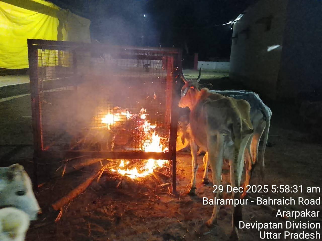 बलरामपुर।आदर्श नगर पालिका परिषद द्वारा संचालित कान्हा गौशाला,ग्राम सेवक रामपुरवा में इन दिनों पड़ रही अत्यंत भीषण शीतलहर के दृष्टिगत गौ माता की सुरक्षा,संरक्षण एवं राहत को सर्वोच्च प्राथमिकता दी जा रही है। नगर पालिका परिषद के अध्यक्ष डॉ.धीरेंद्र प्रताप सिंह धीरू के निर्देशन में गौशाला परिसर में लगातार अलाव की समुचित व्यवस्था सुनिश्चित की जा रही है,ताकि कड़ाके की ठंड से गौवंश को सुरक्षित रखा जा सके।
