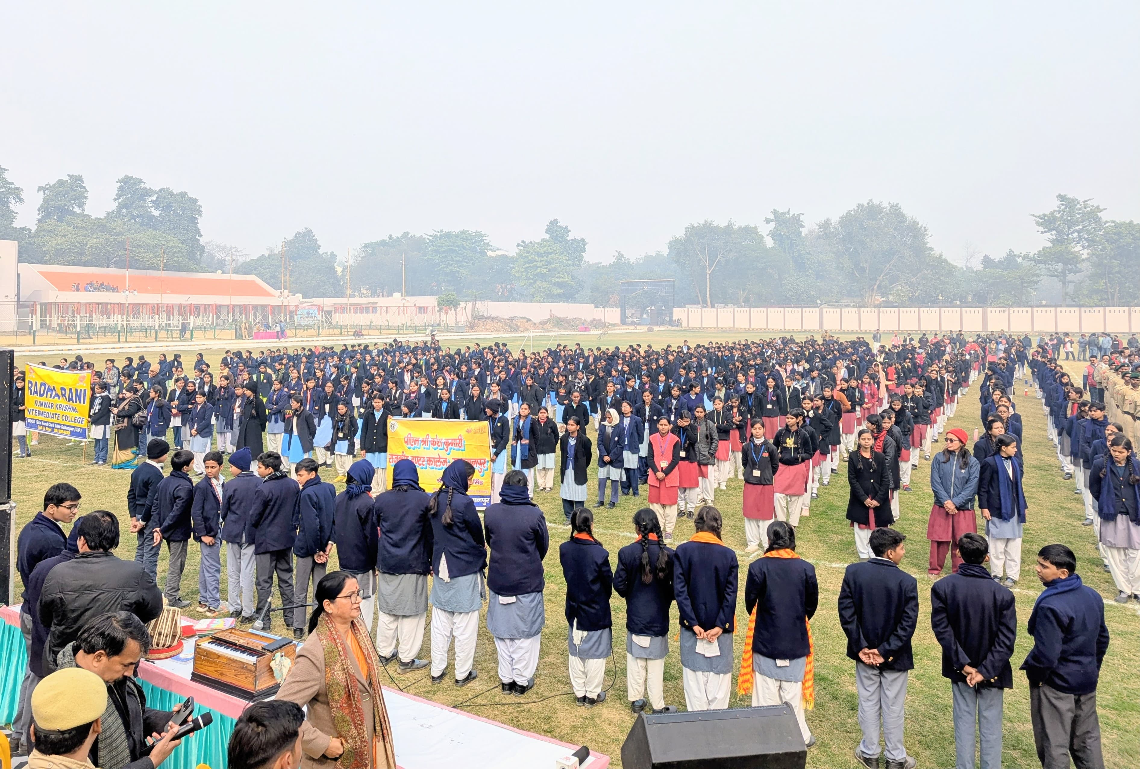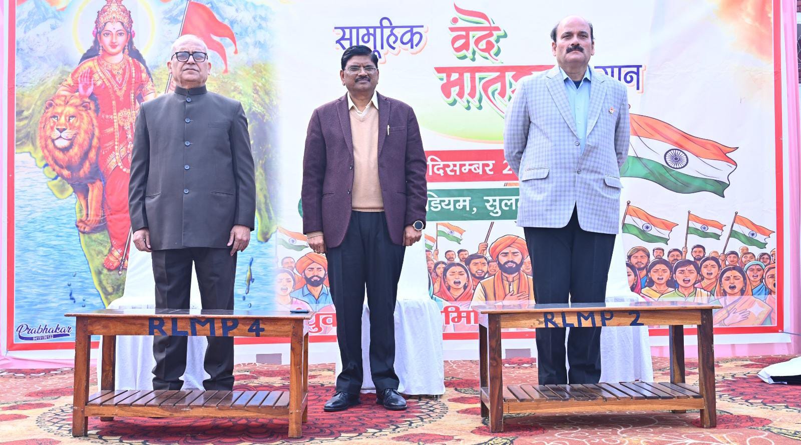 सुल्तानपुर,संयुक्त सेवा समिति के द्वारा जिले के पंत स्टेडियम में आयोजित किया गया कार्यक्रम,, सोमवार को जनपद की तमाम समितियां ने जनपद के अनेक विद्यालयों के छात्र- छात्राओं के साथ मिलकर राष्ट्रीय गीत वंदे मातरम् गायन का आयोजन किया। राष्ट्रीय गीत वंदे मातरम के गौरवशाली 150 वर्ष पूर्ण होने के उपलक्ष में जनपद की तमाम समितियों ने मिलकर संयुक्त सेवा समिति के बैनर तले यह आयोजन किया।