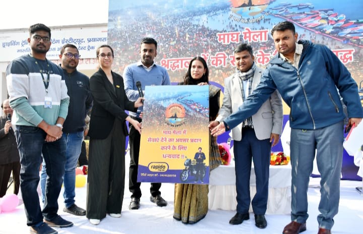 संजय द्विवेदी प्रयागराज।परिवहन विभाग के तत्वावधान में डीटीआई प्रांगण नैनी में रैपीडो बाइक के प्रथम रजिस्ट्रेशन कैम्प का उद्घाटन आज मण्डलायुक्त सौम्या अग्रवाल द्वारा किया गया।इस कैम्प का मुख्य उद्देश्य माघ मेला के दौरान श्रद्धालुओ को सुरक्षित सुगम एवं अनुशासित परिवहन सुविधा उपलब्ध करने हेतु रैपीडो प्लेटफॉर्म पर युवाओं का पंजीकरण कराना था जो मेला अवधि में रैपिडो द्वारा निर्धारित दरो पर श्रद्धालुओ को बाइक सेवा प्रदान कर सकेगे।उद्घाटन के अवसर पर उपस्थित सभी प्रतिभागियो एवं अतिथियो को मण्डलायुक्त ने सड़क सुरक्षा की शपथ दिलाई तथा इसे युवाओ के लिए रोजगार का एक महत्वपूर्ण अवसर बताया।उन्होने कहा की बड़े धार्मिक आयोजनो के दौरान ऐसे नवाचार यातायात व्यवस्था को बेहतर बनाने के साथ-साथ युवाओ को आत्मनिर्भर बनने में भी सहायता करते है।पहले दिन इस कैम्प के माध्यम से लगभग 125 रजिस्ट्रेशन हुए।इलाहाबाद विश्वविद्यालय में भी रैपिडो कम्पनी द्वारा एक और कैंप लगाया गया था जिसमें आज पहले दिन लगभग 75 रजिस्ट्रेशन हुए।माघ मेला के दौरान बड़ी संख्या में श्रद्धालुओ की आवागमन आवश्यकताओ को ध्यान में रखते हुए मेला प्रशासन द्विपहिया संचालको के माध्यम से यातायात को सुगम बनाने का प्रयास कर रहा है। इससे भीड़भाड़ वाले क्षेत्रो में श्रद्धालुओ को त्वरित और सुविधाजनक आवागमन की सुविधा मिलेगी तथा मेला क्षेत्र में यातायात दबाव को कम करने में सहायता मिलेगी।कार्यक्रम में परिवहन विभाग के वरिष्ठ अधिकारियो के साथ- साथ जिलाधिकारी प्रयागराज मनीष वर्मा प्रयागराज विकास प्राधिकरण के उपाध्यक्ष एवं मेला अधिकारी ऋषिराज तथा नगर आयुक्त सेलम साई तेजा ने भी प्रतिभाग किया।सभी अधिकारियों ने इस पहल की सराहना करते हुए इसे माघ मेला के सफल सुव्यवस्थित और सुरक्षित संचालन के लिए अत्यंत उपयोगी बताया।रैपीडो बाइक की ओर से तन्वी सर्वेश एवं तनुज ने कार्यक्रम में प्रतिनिधित्व किया।उन्होंने रैपीडो प्लेटफॉर्म की कार्यप्रणाली पंजीकरण प्रक्रिया और सुरक्षा मानको की जानकारी साझा की।