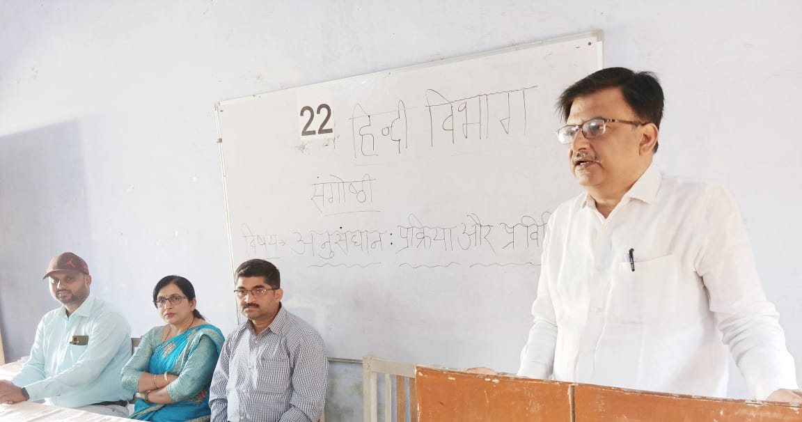 अध्यक्षता करते हुए प्रोफेसर रंजना पटेल ने कहा कि अनुसंधान में प्रयुक्त होने वाली रणनीति प्रकिया और तकनीक पहले से स्पष्ट होनी चाहिए।विश्लेषण के लिए साक्ष्य एकत्र करते समय सावधानी बरतनी चाहिए। संचालन असिस्टेंट प्रोफेसर ज्ञानेन्द्र विक्रम सिंह रवि, स्वागत डॉ विभा सिंह व आभार ज्ञापन डॉ ज्ञानेन्द्र प्रताप सिंह ने किया। इस अवसर पर शोध व एम ए हिंदी के सभी विद्यार्थी उपस्थित रहे।