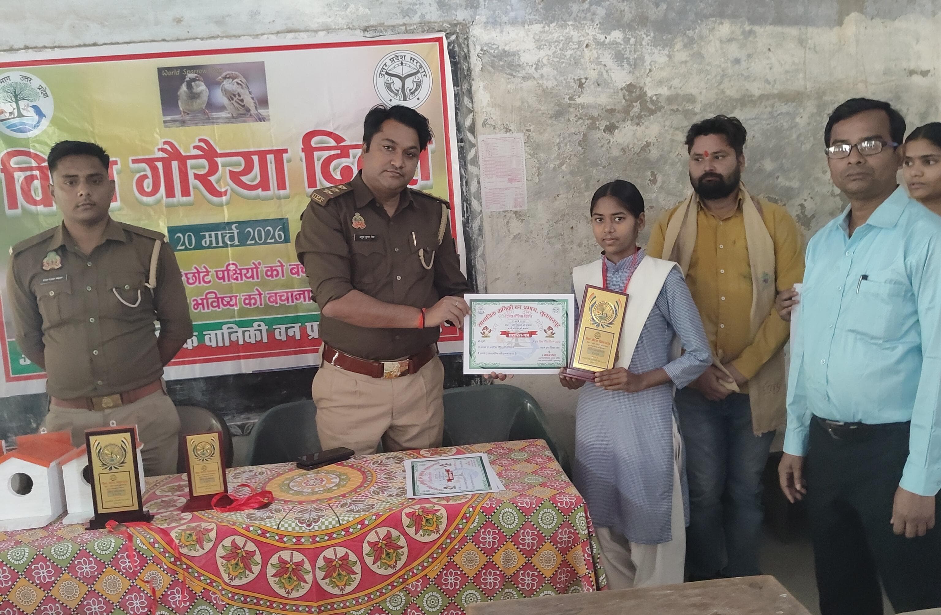 सुल्तानपुर,सामाजिक वानिकी वन प्रभाग सुल्तानपुर द्वारा विश्व गौरैया दिवस के अवसर पर गोसाईं बाबा बालिका इंटर कॉलेज गोपालपुर भदैंया में आयोजन किया गया। पूर्व में हुई चित्र कला प्रतियोगिता में प्रथम स्थान वर्षा, द्वितीय पलक पाण्डेय और तृतीय स्थान पर अन्याय तिवारी रही। सभी को शील्ड और मेडल और प्रशस्ति पत्र देकर सम्मानित किया गया।