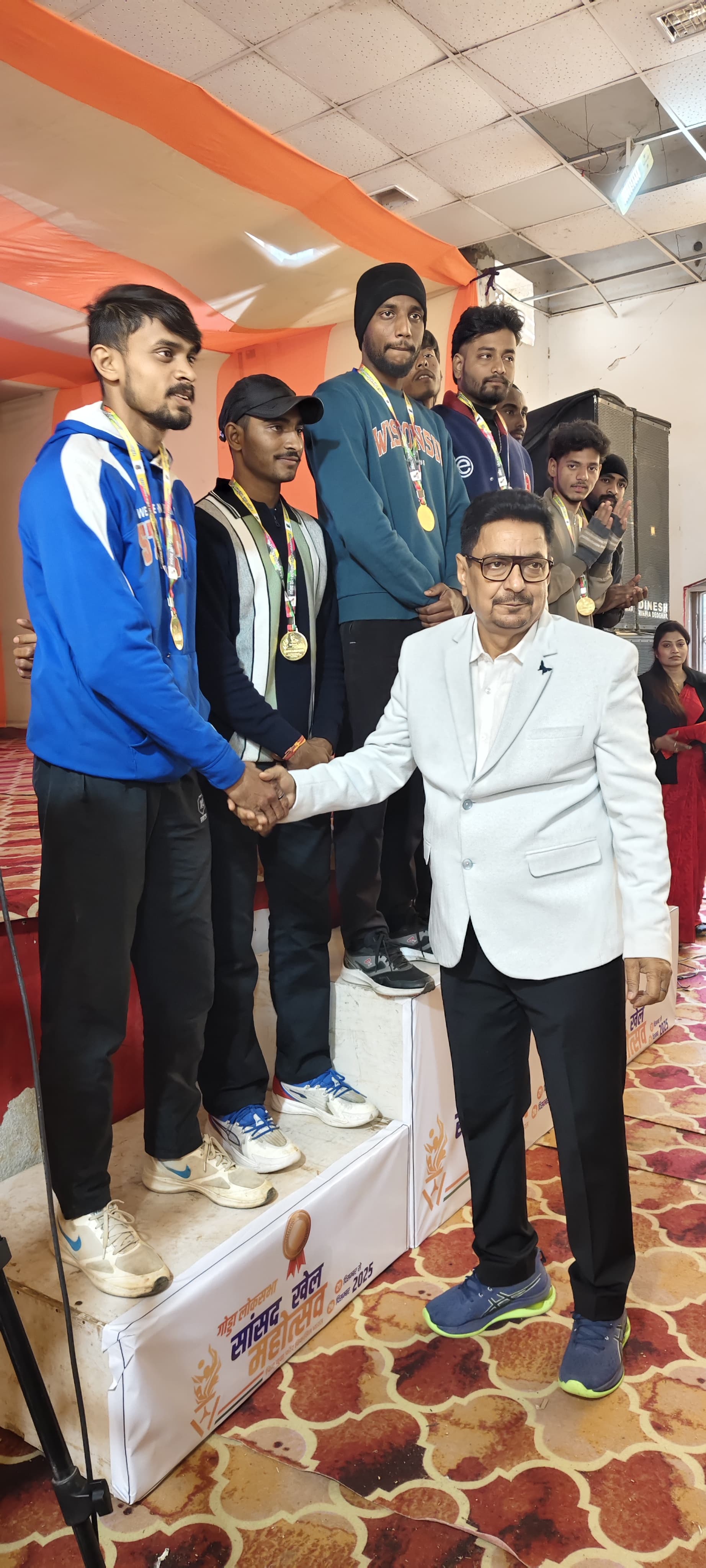 सांसद खेल महोत्सव में चल रहे मैराथन सहित 12 खेलों का सफल संचालन जिला ओलंपिक संघ के तत्वाधान में हुआ।सभी खेल संघ के पदाधिकारियों ने जिला ओलंपिक संघ के अध्यक्ष डॉ सुनील खवाड़े के नेतृत्व में सफल संचालन में अहम भूमिका निभाई।। सांसद खेल महोत्सव 2025 का विधिवत समापन भव्यतम तरीके से नेताजी सुभाष चन्द्र बोस इनडोर स्टेडियम में किया जाएगा।।सांसद निशिकांत दुबे सहित झारखंड के पूर्व मुख्यमंत्री बाबूलाल मरांडी सहित कई गणमान्य सदस्य मौजूद रहेंगे।। सांसद खेल महोत्सव पांचवे दिन देश के प्रधानमंत्री नरेंद्र मोदी ने दूरदर्शन के माध्यम से पूरे भारत में चल रहे सांसद खेल महोत्सव का जायजा लिया।साथ हीं कई खिलाड़ियों पदाधिकारियों से सासंद खेल महोत्सव से क्या लाभ मिला ये भी जाना।