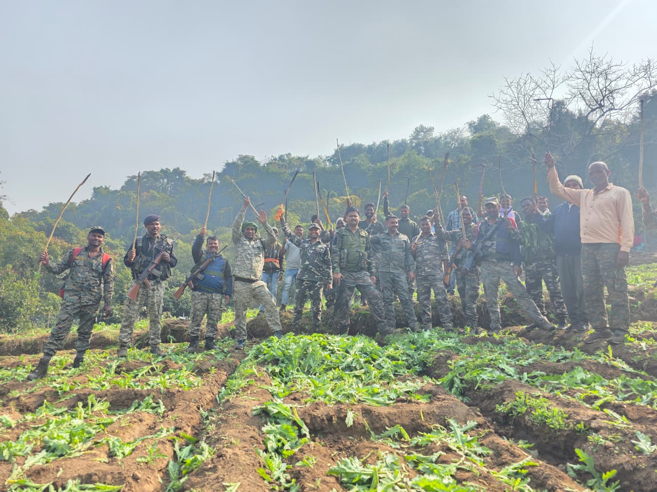 हजारीबाग | चौपारण थाना क्षेत्र में अवैध अफीम की खेती के खिलाफ बड़ी कार्रवाई की गई है। दिनांक 21.01.2026 को प्राप्त सूचना के आधार पर चौपारण थाना अंतर्गत ग्राम सिकदा में वन विभाग एवं चौपारण पुलिस द्वारा संयुक्त अभियान चलाया गया, जिसमें सिकदा के विभिन्न इलाकों में लगभग 70 एकड़ में अवैध रूप से लगी अफीम की खेती को चिन्हित कर मौके पर ही विनष्ट कर दिया गया। यह क्षेत्र बिहार से सटे फल्गु नदी के किनारे अवस्थित है। अभियान के दौरान घटनास्थल से 15 डिलीवरी पाइप बरामद किए गए, जिन्हें वहीं नष्ट कर दिया गया। अवैध रूप से अफीम की खेती में संलिप्त व्यक्तियों के नाम-पते का सत्यापन किया जा रहा है तथा दोषियों की पहचान के बाद उनके विरुद्ध कांड दर्ज कर कानूनी कार्रवाई की जाएगी। संयुक्त अभियान में श्री अजित कुमार बिमल (SDPO बरही), श्री चंद्रशेखर (पु0नि0 बरही अंचल), सरोज सिंह चौधरी (थाना प्रभारी चौपारण), SI सुबिन्दर राम, SI रतन टुडू, ASI बदल महतो एवं सशस्त्र बल, तथा बनपाल कुलदीप कुमार शामिल रहे। उल्लेखनीय है कि ड्रोन के माध्यम से दुर्गम इलाकों को चिन्हित कर अवैध फसलों का विनष्टीकरण किया जा रहा है। अवैध मादक पदार्थों की खेती एवं तस्करी के विरुद्ध आगे भी इसी प्रकार सख्त कार्रवाई जारी रहेगी। — पुलिस अधीक्षक, हजारीबाग