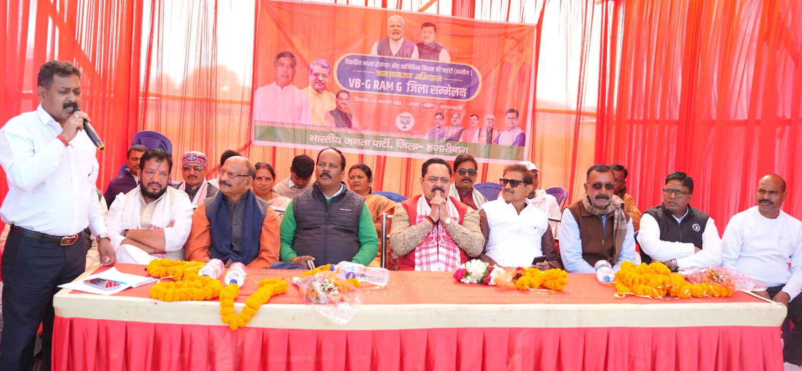 हजारीबाग सदर विधानसभा क्षेत्र अंतर्गत कटकमसांडी प्रखण्ड के बहिमर में मंगलवार को आयोजित विकसित भारत रोजगार एवं आजीविका मिशन की गारंटी (VB-GRAM-G) जिला सम्मेलन में विधायक प्रदीप प्रसाद सम्मिलित हुए। इस अवसर पर उन्होंने कहा कि केंद्र एवं राज्य सरकार की जनकल्याणकारी योजनाएँ समाज के अंतिम पंक्ति में खड़े व्यक्ति तक पहुँचे, यही हमारी प्राथमिकता और संकल्प है।