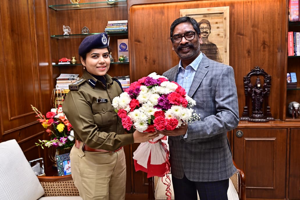 पुलिस महकमे के आला अधिकारियों ने भी की भेंट सुरक्षा और कानून व्यवस्था के मोर्चे पर तैनात वरीय पुलिस अधिकारियों ने भी मुख्यमंत्री से मुलाकात की। इसमें एसीबी एडीजी श्रीमती प्रिया दुबे, सीआईडी आईजी श्री असीम विक्रांत मिंज, आईजी मुख्यालय श्री सुदर्शन प्रसाद मंडल के साथ-साथ बोकारो और हजारीबाग के डीआईजी शामिल थे। रांची के सिटी, ग्रामीण और ट्रैफिक एसपी ने भी मुख्यमंत्री को नए साल की बधाई दी।