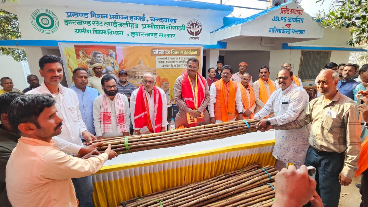 मांडू/बरही - हजारीबाग की ऐतिहासिक रामनवमी की पारंपरिक अस्त्र शस्त्र कला कौशल प्रदर्शन को पुनर्जीवित करने के उद्देश्य से हजारीबाग लोकसभा क्षेत्र के सांसद मनीष जायसवाल द्वारा बीते कुछ वर्षों से रामनवमी से पूर्व क्षेत्र के अखाड़ा धारियों के बीच दंड का वितरण किया जाता रहा है। सांसद दंड वितरण अभियान-2026 के तहत सांसद मनीष जायसवाल लगातार चौथे दिन इस अभियान में अहले सुबह से लेकर देर रात तक जुटे रहें। उन्होंने इसकी शुरुआत रविवार को अहले सुबह मांडू विधानसभा क्षेत्र के टाटीझरिया प्रखंड अंतर्गत डूमर पंचायत के कोल्हू हनुमान मंदिर प्रांगण से किया और इसका समापन बरही विधानसभा क्षेत्र के पदमा में दंड वितरण के साथ हुआ। सांसद मनीष जायसवाल ने रविवार को मांडू और बरही विधानसभा क्षेत्र के कुल 09 मंडलों में अलग-अलग जगहों पर सांसद दंड वितरण अभियान चलाकर कुल 424 अखाड़ा धारियों को दंड भेंट किया। जिसमें टाटीझरिया मंडल में 50, विष्णुगढ़ पश्चिमी मंडल में 76, बरही पूर्वी मंडल में 29, बरही पश्चिमी मंडल में 45, चंदवारा मंडल में 38, चौपारण पूर्वी मंडल में 46, चौपारण मध्य मंडल में 43, चौपारण पश्चिमी में 48 और पदमा मंडल में 49 अखाड़ों तक सांसद मनीष जायसवाल ने यह भेंट पहुंचाया। सांसद मनीष जायसवाल के साथ बरही विधानसभा क्षेत्र में बरही के विधायक मनोज यादव सभी जगहों पर दंड वितरण अभियान में साथ रहें और सामूहिक रूप से नेताद्वय ने अखाड़ा धारियों को दंड भेंटकर उनका उत्साह बढ़ाया। इस दौरान सभी जगहों पर सांसद मनीष जायसवाल और बरही विधायक मनोज यादव का स्थानीय रामभक्तों ने उत्साहपूर्वक गर्मजोशी से जबरदस्त स्वागत किया। बरसोत में पुराने रामभक्तों ने जब दंड पर अपने अभूतपूर्व कला-कौशल का शानदार प्रदर्शन किया तो सांसद मनीष जायसवाल और बरही विधायक मनोज यादव ने खूब तालियां बजाई।