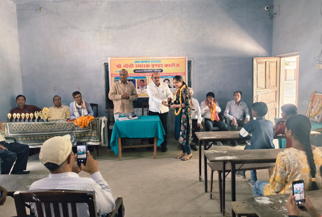 जौनपुर । श्री गांधी स्मारक इंटर कॉलेज रामनगर, विधमौवां में परीक्षा में उत्कृष्ट प्रदर्शन करने वाले छात्र-छात्राओं के सम्मान में शनिवार को समारोह का आयोजन किया गया जिसमें विद्यालय की प्रबंधक डॉ. प्रीती उपाध्याय द्विवेदी एवं प्रधानाचार्य डॉ. संतोष कुमार दूबे के द्वारा मेधावी छात्रों को पुरस्कृत कर उज्ज्वल भविष्य की कामना की गई। इस अवसर पर छात्र-छात्राओं के अभिभावकों ने प्रबंधक एवं प्रधानाचार्य की सराहना की ।हाईस्कूल मे समीक्षा सिंह प्रथम, उजाला दूबे को द्वितीय व आयुषी यादव को तृतीय स्थान प्राप्त हुआ है,जबकि इंटरमीडिएट में साहिल यादव प्रथम, पायल तिवारी को द्वितीय व संदीप कुमार को तृतीय स्थान प्राप्त हुआ है । इन सभी मेधावी विद्यार्थियों ने विद्यालय के साथ जिले का भी नाम रोशन किया। कार्यक्रम का संचालन राजेश दुबे ने किया अंत में प्रधानाचार्य डॉ. संतोष कुमार दूबे ने विद्यार्थियों एवं आयोजकों का सम्मान किया और सभी को बधाई दी। विद्यालय परिवार ने सभी सफल छात्र-छात्राओं को बधाई देते हुए उनके उज्ज्वल भविष्य की कामना की।