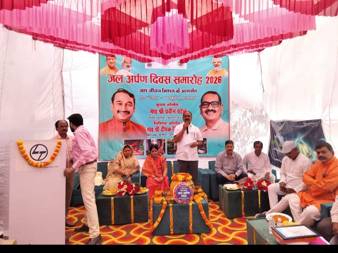 प्रयागराज।विश्व जल दिवस के अवसर पर विकास खंड सहसों के ग्राम बभनकुइया में जल जीवन मिशन के अंतर्गत तैयार की गई पेयजल योजना को विधिवत जनता को समर्पित किया गया। जल अर्पण दिवस के रूप में आयोजित इस भव्य समारोह में क्षेत्रीय सांसद प्रवीण पटेल मुख्य अतिथि के रूप में उपस्थित रहे, जबकि कार्यक्रम का संचालन जिला समन्वयक अश्विनी श्रीवास्तव द्वारा किया गया। कार्यक्रम की शुरुआत जल संरक्षण की शपथ दिलाकर की गई। उपस्थित लोगों को जल बचाने, स्वच्छ पानी का उपयोग करने तथा जल स्रोतों को सुरक्षित रखने का संकल्प दिलाया गया। इस अवसर पर विधायक दीपक सिंह पटेल तथा अपर जिलाधिकारी नमामि गंगे संजीव कुमार शाक्य भी समारोह में मौजूद रहे। समारोह के दौरान जल जीवन मिशन के अंतर्गत तैयार की गई नल पेयजल योजना को जल अर्पण कर ग्राम प्रधान अशोक कुमार को सौंपा गया।