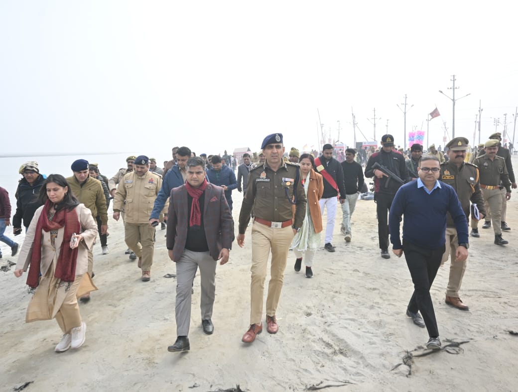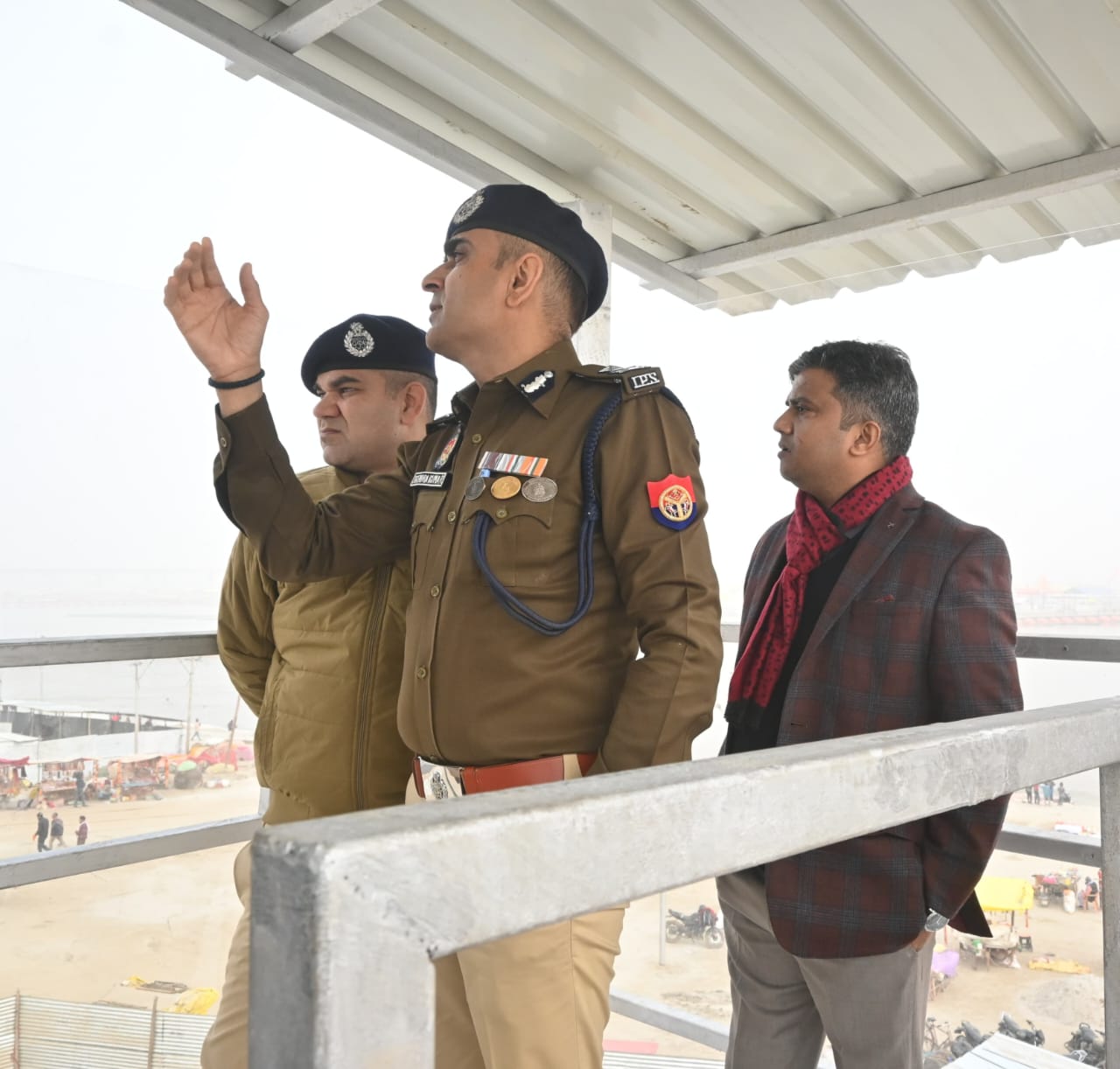 संजय द्विवेदी प्रयागराज।माघ मेला–2026के दौरान स्नानार्थियो/श्रद्धालुओ का आवागमन विभिन्न मार्गों से होता है जिन्हे निर्धारित यातायात योजनाओ के अनुसार उनके सम्बंधित स्थलो तक सुरक्षित एवं सुव्यवस्थित रूप से पहुँचाया जाता है।पुलिस आयुक्त कमिश्नरेट प्रयागराज जोगेन्द्र कुमार के दिशा-निर्देशों पर आज दिनांक 29.12.2025 को माघ मेला क्षेत्र में स्नान घाटो मंदिरो एवं अन्य महत्वपूर्ण स्थलो पर संभावित अत्यधिक भीड़ की स्थिति को दृष्टिगत रखते हुए योजनाबद्ध तरीके से आपातकालीन यातायात योजना का अभ्यास किया गया।अभ्यास के दौरान यातायात नियंत्रण सुरक्षा उपायो भीड़ को नियंत्रित करने तथा यातायात को सुचारू बनाए रखने के उद्देश्य से श्रद्धालुओं को डायवर्ट किया गया।साथ ही इंटीग्रेटेड कमांड एंड कन्ट्रोल सेंटर एवं सीसीटीवी कैमरो के माध्यम से मेला क्षेत्र में बढ़ रही भीड़ का आकलन करते हुए पुलिस आयुक्त कमिश्नरेट प्रयागराज अपर पुलिस आयुक्त एवं पुलिस अधीक्षक माघ मेला से तत्काल समन्वय स्थापित कर आपातकालीन योजना के क्रियान्वयन की प्रक्रिया का अभ्यास किया गया।इस क्रम में परेड कोतवाली एवं संगम क्षेत्र में आपातकालीन यातायात योजना का अभ्यास आयोजित किया गया।आपातकालीन योजना के अभ्यास के दौरान मंडलायुक्त प्रयागराज सौम्या अग्रवाल पुलिस आयुक्त कमिश्नरेट प्रयागराज जोगेन्द्र कुमार के साथ अपर पुलिस आयुक्त कमिश्नरेट प्रयागराज डॉ.अजय पाल शर्मा जिलाधिकारी प्रयागराज मनीष कुमार वर्मा तथा पुलिस अधीक्षक माघ मेला नीरज कुमार पाण्डेय द्वारा माघ मेला क्षेत्र में भ्रमणशील रहते हुए परेड, कोतवाली एवं संगम क्षेत्रो में किए जा रहे अभ्यास का निरीक्षण किया गया।निरीक्षण के दौरान सम्बंधित अधिकारियों एवं कर्मचारियो को आवश्यक दिशा-निर्देश देते हुए आपातकालीन योजनाओं का कड़ाई से अनुपालन सुनिश्चित करने के निर्देश दिए गए।