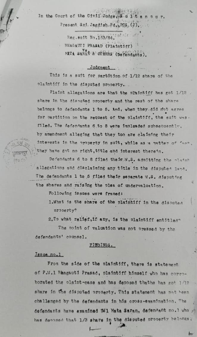 1974 में घाटे के चलते कारखाना बंद कर दिया गया और इन तीनों पांचों गाटों की जमीन को कोर्ट के जरिए 1984 में तीन हिस्सों में बांट दिया गया। इसी के बाद आपसी सहमति से इसमें बने मकान का हिस्सा माताशरण को दिया गया। जिस पर अब उन्हीं के वारिस रमेश केसरवानी काबिज दाखिल हैं,जिसका फैसला 1984 में अपर सिविल जज द्वारा कर दिया गया।