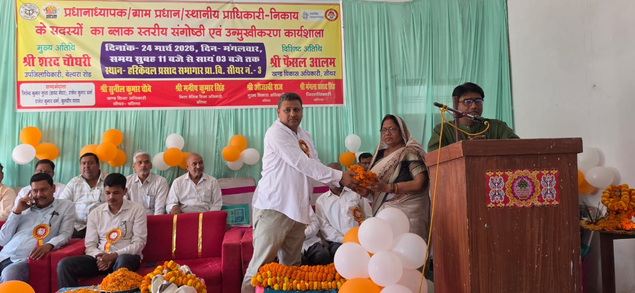 संजीव सिंह बलिया, 25 मार्च 2026: शैक्षिक सत्र 2025-26 के जनवरी-फरवरी माह में निपुण भारत मिशन के तहत डीएलएड प्रशिक्षुओं द्वारा कराए गए आकलन में चयनित 448 निपुण विद्यालयों के प्रधानाध्यापकों व प्रभारी प्रधानाध्यापकों को गंगा बहुद्देशीय सभागार, कलेक्ट्रेट में मुख्य विकास अधिकारी बलिया श्री ओजस्वी राज एवं जिला बेसिक शिक्षा अधिकारी श्री मनीष कुमार सिंह के हाथों प्रमाण-पत्र देकर सम्मानित किया गया।कार्यक्रम का उद्घाटन मां सरस्वती के तेल चित्र पर माल्यार्पण एवं दीप प्रज्वलन से किया गया। निपुण भारत मिशन पर चर्चा करते हुए जनपद के एसआरजी आशुतोष कुमार सिंह तोमर, संतोष चंद तिवारी व चित्रलेखा सिंह ने विद्यालयों में किए जा रहे नवाचारों पर प्रकाश डाला।मुख्य अतिथि मुख्य विकास अधिकारी बलिया ने सभी निपुण विद्यालयों के प्रधानाध्यापकों को बधाई देते हुए उनके कार्यों की सराहना की। जिला बेसिक शिक्षा अधिकारी बलिया ने सभी निपुण विद्यालयों के प्रधानाध्यापकों का आभार व्यक्त करते हुए कहा कि हमें निश्चिंत होकर नहीं बैठना है। आने वाले नवीन सत्र में नामांकन बढ़ाकर प्रदेश में नई ऊंचाई हासिल करना हमारा लक्ष्य होगा।कार्यक्रम में मुख्य रूप से विजय कुमार, डॉ. संजय कुमार यादव, डॉ. भवतोष पांडेय, अजयकांत, मुमताज अहमद, राम प्रकाश सिंह व बम बहादुर की विशेष भूमिका रही। संचालन डॉ. शशि भूषण मिश्रा ने किया।
