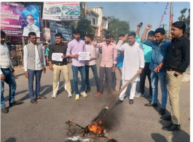 छात्र नेता सूरज शुक्ला ने उत्तर प्रदेश के मुख्यमंत्री योगी आदित्यनाथ से मांग किया है कि उक्त अपमानजनक प्रश्न को तत्काल प्रभाव से निरस्त किया जाए।उन्होंने यह भी कहा कि प्रश्न पत्र सेट करने वाली एजेंसी को आजीवन ब्लैक लिस्ट किया जाए तथा भर्ती बोर्ड सार्वजनिक रूप से माफी मांगे।इस विरोध प्रदर्शन और पुतला दहन कार्यक्रम के दौरान सुरक्षा व्यवस्था के व्यापक इंतजाम किए गए थे।इस अवसर पर जिला अध्यक्ष धर्मेंद्र शुक्ला, रंजीत पांडेय,नीरज, शहजाद, आलोक पाण्डेय,उमंग मिश्रा, हिमांशु तिवारी,सोनू सहित सैकड़ों कार्यकर्ता मौजूद रहे।