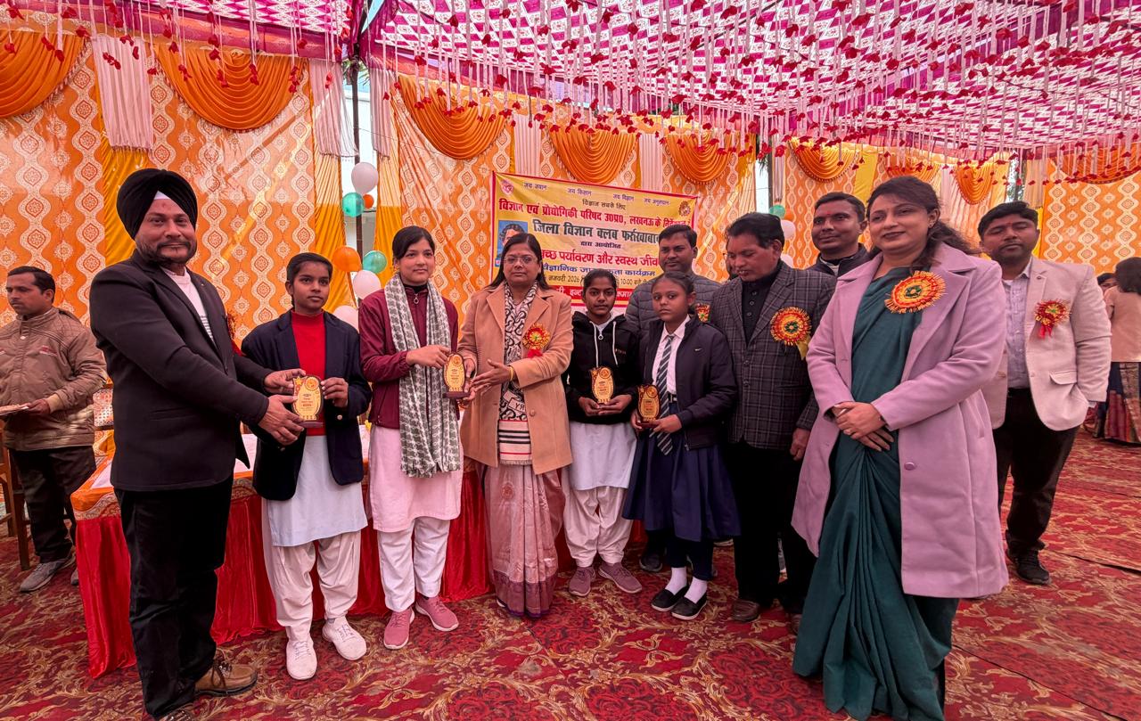 फर्रुखाबाद l विज्ञान एवं प्रौद्योगिकी परिषद तत्वाधान में और जिलाधिकारी आशुतोष कुमार द्विवेदी के निर्देश पर जिला विज्ञान क्लब फ़र्रुख़ाबाद द्वारा आरपी इंटर कॉलेज कमालगंज में आज विज्ञान लोकप्रियकरण एवं विज्ञान जनजागरूकता कार्यक्रम का आयोजन किया गया।कार्यक्रम का शुभारंभ प्राचार्य आर.पी.डिग्री कॉलेज कमाल गंज डॉ. सूरजभान सागर द्वारा माँ सरस्वती के सम्मुख दीप प्रज्वलित कर किया गया।जिला विज्ञान क्लब की जिला समन्वयक दीपिका राजपूत ने कार्यक्रम की प्रस्तावना के अंतर्गत बताया कि विज्ञान लोकप्रिय करण एवं विज्ञान जन जागरूकता हेतु ब्लॉक कमाल गंज के 4 विद्यालय आर.पी.इंटर कॉलेज कमालगंज श्री फ़िरोज़ गांधी जनता इंटर कॉलेज ,आदर्श जनता इंटर कॉलेज रानूखेड़ा डी.पी.एस.इंटर कॉलेज मूसाखिरिया के छात्र छात्राओं ने स्वच्छ पर्यावरण और स्वस्थ जीवन विषय पर व्याख्यान मॉडल पोस्टर तथा निबंध लेखन आदि गतिविधियों में प्रतिभाग किया।आरपी इंटर कॉलेज के एनसीसी कैडेट के द्वारा नुक्कड़ नाटक का प्रस्तुतिकरण किया गया ।जिसे सभी के द्वारा सराहा गया।पर्यावरण विशेषज्ञ गुंजा जैन ने बच्चों को जागरूक करते हुए कहा कि पवित्र पावनी गंगा तट को स्वच्छ रखना है तथा प्लास्टिक थैले के स्थान पर कपड़े के थैले का प्रयोग करने का संकल्प करना है।विशेषज्ञ के रूप में जीव विज्ञान प्रवक्ता हरेंद्र प्रताप सिंह ने संतुलित आहार और योग द्वारा जीवन को स्वस्थ रखने का संदेश दिया।प्रधानाचार्य कैप्टन बलविंदर सिंह ने छात्र छात्राओं का उत्साहवर्धन कर धन्यवाद ज्ञापित किया।व्याख्यान गतिविधि में नैन्सी श्री फ़िरोज़ गांधी जनता इंटर कॉलेज,मॉडल में जावित्री तथा निबंध में नंदनी आरपी इंटर कॉलेज,पोस्टर में जैनब डीपीएस इंटर कॉलेज मूसाखिरिया ने प्रथम स्थान प्राप्त किया।मुख्य अतिथि द्वारा कार्यक्रम की सराहना की गई।तथा सभी प्रतिभागी छात्र छात्राओं को पुरस्कृत कर सम्मानित किया गया।इस अवसर पर प्रधानाचार्य सत्य प्रकाश वर्मा आशुतोष पांडे उपस्थित रहे कार्यक्रम का संचालन संजीव कुमार ने किया कार्यक्रम की व्यवस्था में रामबीर सिंह अमिताभ सिंह राजेश कुमार पाण्डेय राधा यादव रणजीत सिंह सुनील कुमार दिव्या शर्मा राजेश कुमार शिवराम बर्मा पी डी अमित कुमार राजकुमार यादव देवेश कुमार सनी बाथम ने सहयोग किया।