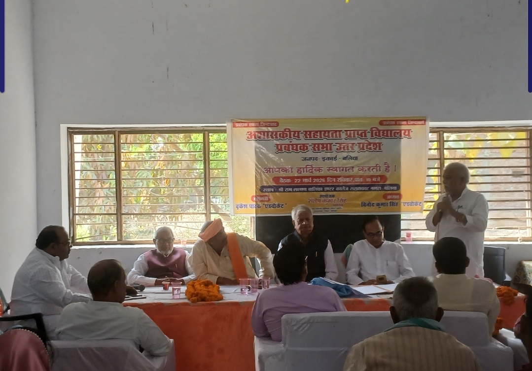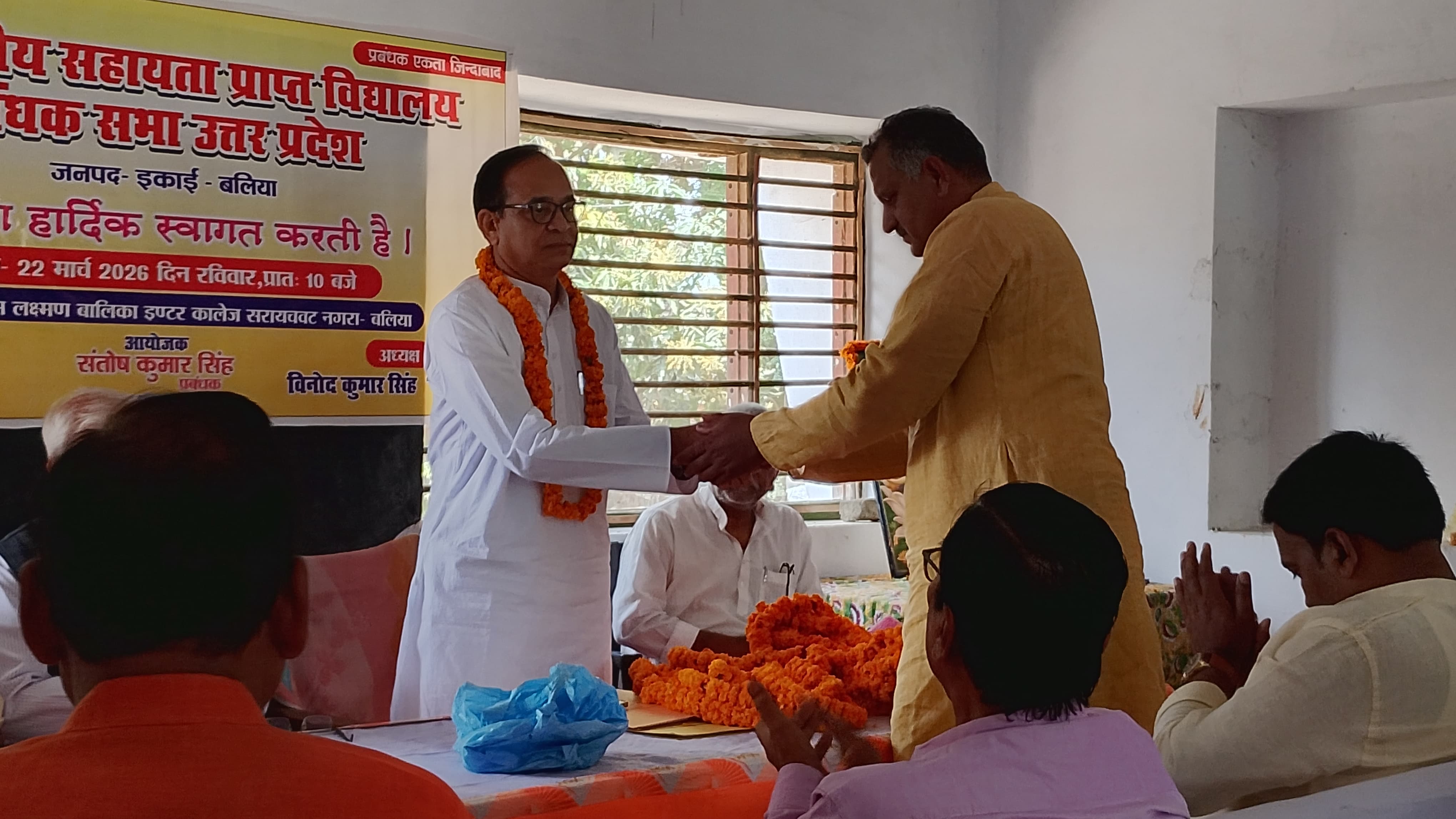 संजीव सिंह बलिया! नगरा: 22 मार्च 2026: उत्तर प्रदेश जनपद बलिया की अशासकीय सहायता प्राप्त विद्यालय प्रबंधक सभा की बैठक जिलाध्यक्ष विनोद कुमार सिंह एडवोकेट की अध्यक्षता में आज रविवार सुबह 10 बजे श्री राम लक्ष्मण बालिका इंटर कॉलेज, सराय चावट, न