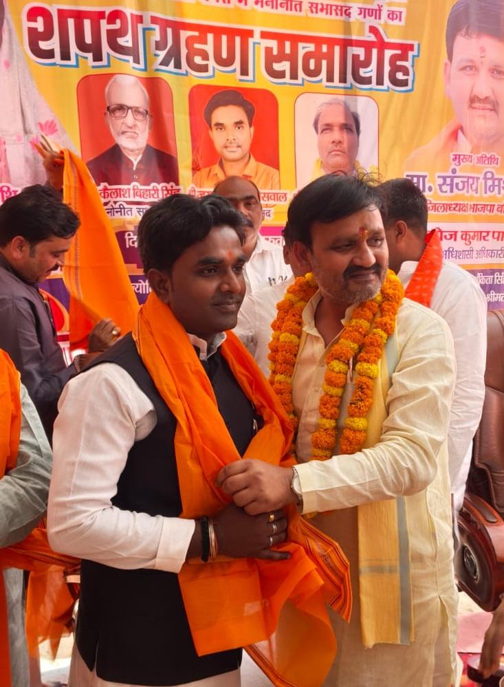 ईश्वर प्रजापति नगरा (बलिया), 10 अप्रैल 2026: आदर्श नगर पंचायत नगरा में मनोनीत सभासदों के शपथ ग्रहण समारोह का आयोजन गरिमामय और उत्साहपूर्ण वातावरण में सफलतापूर्वक संपन्न हो गया। यह समारोह नगरा के विकास और जनहित के कार्यों को नई गति प्रदान करने का प्रतीक साबित हुआ। मुख्य अतिथि के रूप में भाजपा जिलाध्यक्ष संजय मिश्रा की उपस्थिति ने कार्यक्रम को और भव्यता प्रदान की। उनके आगमन पर नगर पंचायत के पदाधिकारियों, सभासदों एवं बड़ी संख्या में कार्यकर्ताओं ने फूल-मालाओं से भव्य स्वागत एवं अभिनंदन किया।समारोह के मुख्य आकर्षण के रूप में नवमनोनीत सभासदों को पद एवं गोपनीयता की शपथ दिलाई गई। इस अवसर पर कैलाश बिहारी सिंह, जयप्रकाश जायसवाल तथा रविंद्र प्रसाद राजभर को औपचारिक रूप से मनोनीत सभासद बनाए जाने की घोषणा की गई। उपस्थित जनप्रतिनिधियों, पदाधिकारियों और कार्यकर्ताओं ने उन्हें हार्दिक बधाई देते हुए उनके उज्ज्वल कार्यकाल की शुभकामनाएं दीं। सभी ने एक स्वर में आशा व्यक्त की कि ये नवमनोनीत सभासद नगर के सर्वांगीण विकास, स्वच्छता अभियान, बुनियादी सुविधाओं के विस्तार और जनसेवा के लिए पूर्ण निष्ठा एवं समर्पण के साथ कार्य करेंगे। भाजपा जिलाध्यक्ष संजय मिश्रा ने अपने संबोधन में कहा कि नगरा नगर पंचायत को आदर्श बनाने के लिए सभी को एकजुट होकर काम करना होगा, ताकि क्षेत्रवासियों को बेहतर सुविधाएं उपलब्ध हो सकें।कार्यक्रम में नगर पंचायत अध्यक्ष श्रीमती इन्दु देवी, उपजिलाधिकारी रवि कुमार, पूर्व प्रत्याशी छठ्ठु राम, पूर्व विधायक धनंजय कनौजिया, पूर्व जिला पंचायत अध्यक्ष सुधीर पासवान, अधिशासी अधिकारी मनोज पाण्डेय, सूर्य प्रकाश सिंह, महामंत्री आलोक शुक्ला, प्रोफेसर समरजीत सिंह, चेयरमैन प्रतिनिधि उमाशंकर राम, कृष्णा कुशवाहा, राजू सोनी, राजू चौहान, सोनू यादव सहित नगर पंचायत के सभी सभासद, पार्टी पदाधिकारी एवं बड़ी संख्या में कार्यकर्ता उपस्थित रहे। कार्यक्रम का संचालन कुशलतापूर्वक अरविंद नारायण सिंह ने किया।अंत में, नवनियुक्त सभासदों को शुभकामनाएं देते हुए सभी ने नगर के सर्वांगीण विकास तथा जनहित के कार्यों को मिलकर आगे बढ़ाने का संकल्प लिया। समारोह में स्थानीय निवासियों की भी अच्छी-खासी भीड़ जुटी, जो नगरा के उज्ज्वल भविष्य के प्रति उत्साह को दर्शाता है। यह आयोजन न केवल प्रशासनिक प्रक्रिया का हिस्सा था, बल्कि स्थानीय लोकतंत्र की मजबूती का प्रतीक भी बना।