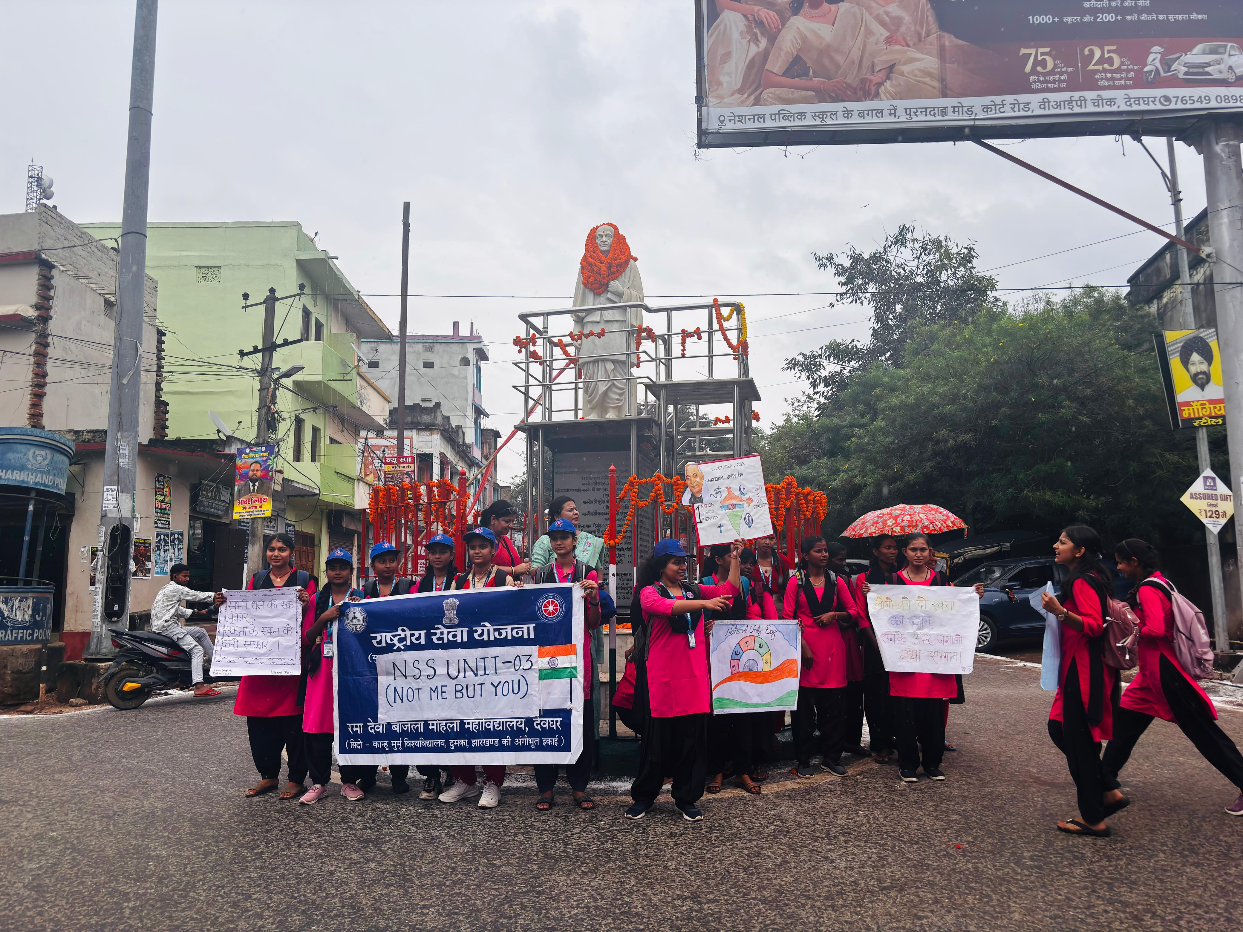 देवघर-रमा देवी बाजला महिला महाविद्यालय देवघर में राष्ट्रीय एकता दिवस के अवसर पर रैली आयोजित।