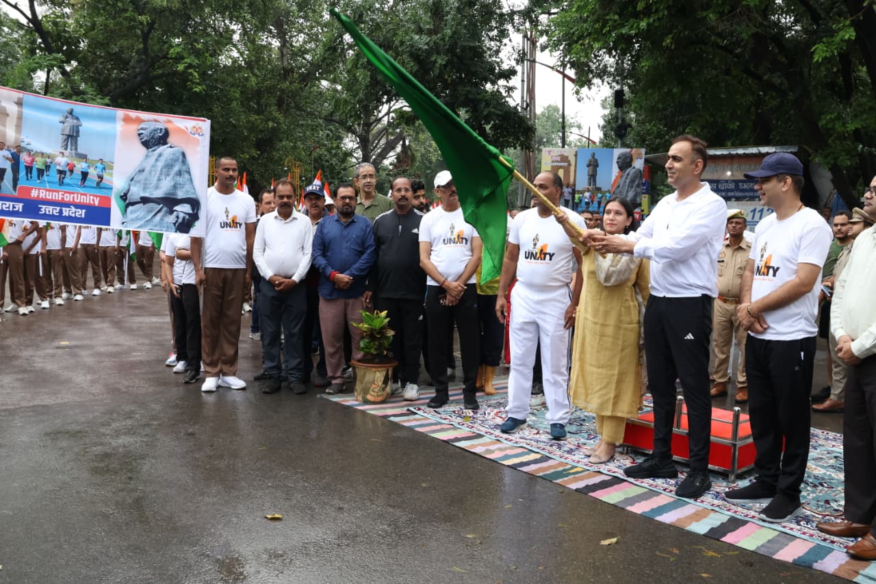 संजय द्विवेदी प्रयागराज।लौह पुरुष सरदार वल्लभ भाई पटेल की 150वी जयन्ती के अवसर पर मण्डलायुक्त प्रयागराज सौम्या अग्रवाल व पुलिस आयुक्त प्रयागराज जोगेन्द्र कुमार द्वारा राष्ट्रीय एकता अखण्डता और समरसता के प्रतीक सरदार वल्लभ भाई पटेल की जयंती के उपलक्ष्य में आयोजित रन फॉर यूनिटी कार्यक्रम में फ्लैग-ऑफ कर शुभारम्भ किया गया।इस अवसर पर अपर पुलिस आयुक्त मुख्यालय एन कोलांची एवं अपर पुलिस आयुक्त कानून-व्यवस्था डॉ अजय पाल शर्मा.अपर जिलाधिकारी नगर सत्यम मिश्र सहित अन्य प्रशासनिक अधिकारी एवं पुलिस अधिकारी द्वारा एकता अखंडता एवं सद्भावना का सन्देश दिया गया।इस मौके पर छात्र-छात्राए व व्यापार मण्डल के पदाधिकारियो एवं सदस्यगण उपस्थित रहे।