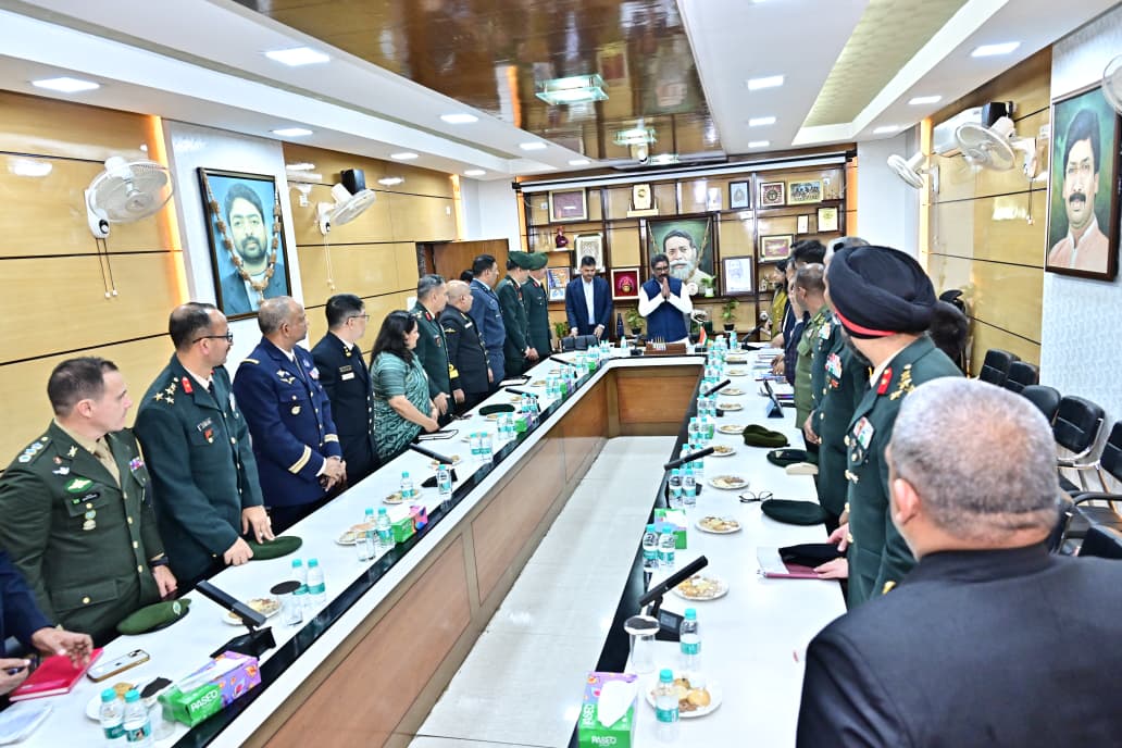 राँची, 04 फरवरी 2026: मुख्यमंत्री श्री हेमन्त सोरेन ने आज कांके रोड स्थित आवासीय कार्यालय में राष्ट्रीय रक्षा महाविद्यालय (NDC) के 17 सदस्यीय प्रतिनिधिमंडल से मुलाकात की। इस दल में भारत सहित 5 देशों के वरिष्ठ सैन्य अधिकारी शामिल थे। संवाद के दौरान मुख्यमंत्री ने झारखंड की खनिज संपदा, खेल प्रतिभा, औद्योगिक विजन और सामाजिक सुरक्षा योजनाओं का विस्तृत खाका प्रस्तुत किया।