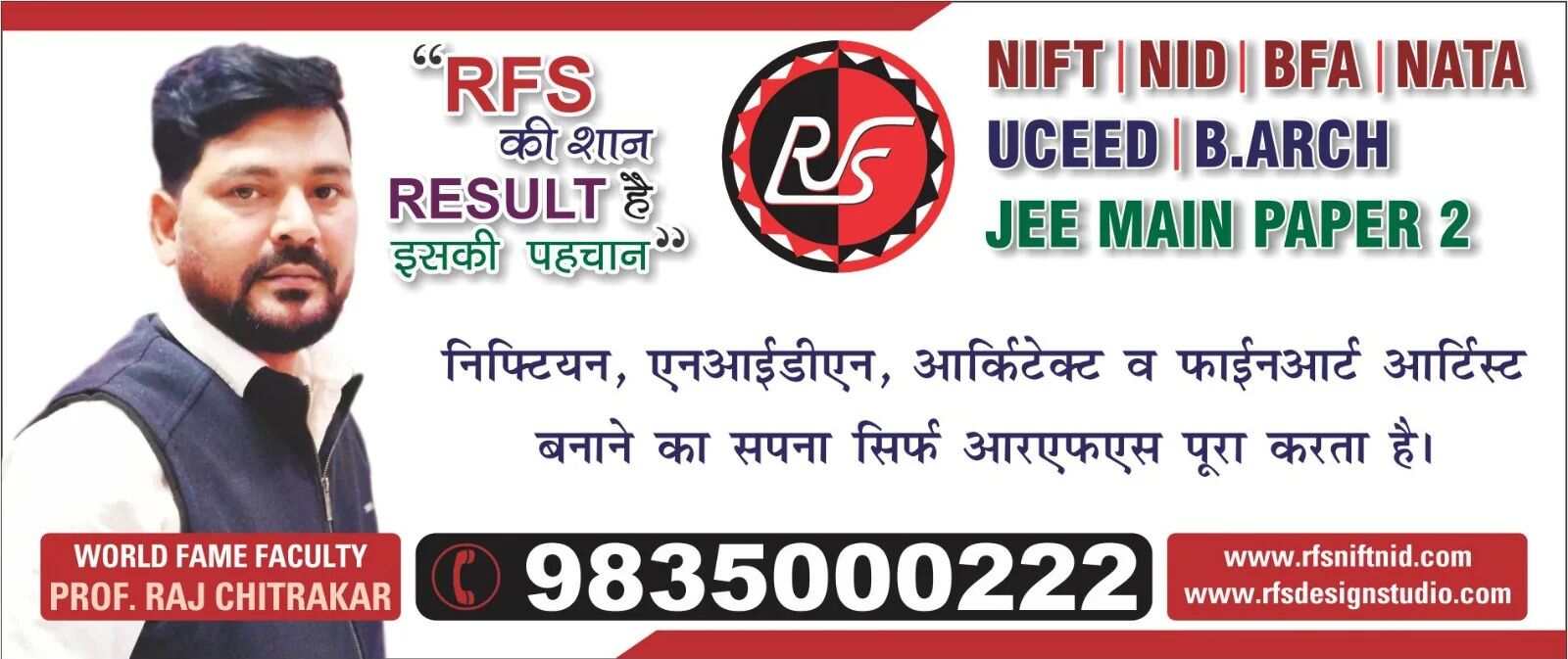 RFS NIFT NID Coaching Institute is one of the Best NIFT Coaching Classes in Patna. Enroll now to get 100% Results. NIFT, NID, NATA, B.Arch, and BFA Entrance Exam Preparation in Patna.