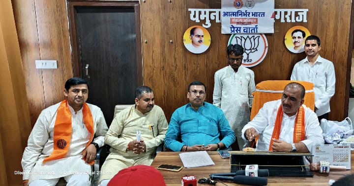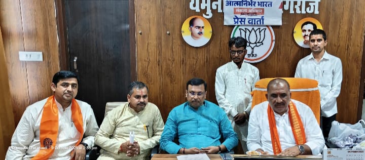 संजय द्विवेदी प्रयागराज।आत्मनिर्भर भारत प्रधानमंत्री नरेन्द्र मोदी के विकसित भारत संकल्प अभियान भारत को सामाजिक और आर्थिक रूप से आत्मनिर्भर बनाने की राष्ट्रीय पहल है।इसका उद्देश्य है हर नागरिक को आत्मनिर्भरता के संकल्प से जोड़ना हर घर स्वदेशी घर-घर स्वदेशी की भावना को सशक्त करना और बोकल फॉर लोकल का संदेश जन-जन तक पहुँचाना है उक्त बातें बृहस्पतिवार को भाजपा जिला कार्यालय सिविल लाइंस प्रयागराज में यमुनापार जिलाध्यक्ष राजेश शुक्ल ने पत्रकारों को सम्बोधित करते हुए कहा और आगे बताया की सभी नागरिक संकल्प लेकर अपने आस-पास और देश के निर्मित वस्तुओं का उपयोग कर स्वदेशी संकल्प को साकार करें।जिलाध्यक्ष राजेश शुक्ल ने बताया 25 सितम्बर पंडित दीनदयाल उपाध्याय की जयंती से 25 दिसंबर पूर्व प्रधानमंत्री स्वर्गीय अटल बिहारी वाजपेयी के जयंती तक आत्मनिर्भर भारत संकल्प अभियान के तहत् विभिन्न कार्यक्रम आयोजित होंगे।जिसमें यमुनापार मे जिला कार्यशाला के 20 मंडलों व चारो विधानसभा स्तर पर आत्मनिर्भर भारत व जीएसटी सम्मेलन सम्पन्न हो चुका 9 अक्टूबर को कैबिनेट मंत्री नन्दगोपाल गुप्ता नन्दी स्वादेशी मेले का उद्घाटन करने जा रहें हैं।16-30 अक्टूबर तक महिला एवं युवा सम्मेलन आयोजित होंगे। 1-15 नवम्बर तक व्यापारी लघु उधोगी प्रोफेशनल सम्मेलन कालेज स्तरीय स्वदेशी संकल्प सेमिनार आयोजित किए जाएंगे।1-25 दिसंबर तक जिला स्तर पर आत्मनिर्भर भारत संकल्प रथ और पद यात्रा निकाली जाएगीं। यमुनापार के बीसो मण्डलो में स्थानीय कारीगर उधमियों के मंडल सम्मेलन आयोजित होंगे। प्रेस-वार्ता का संचालन एवं आभार जिला मीडिया प्रभारी दिलीप कुमार चतुर्वेदी ने किया। प्रेस-वार्ता में विधायक करछना पियूष रंजन निषाद अभियान के जिला संयोजक अनिल मिश्र सतीश विश्वकर्मा मुकेश पाण्डेय नरेश सोनकर आदि उपस्थित रहे।