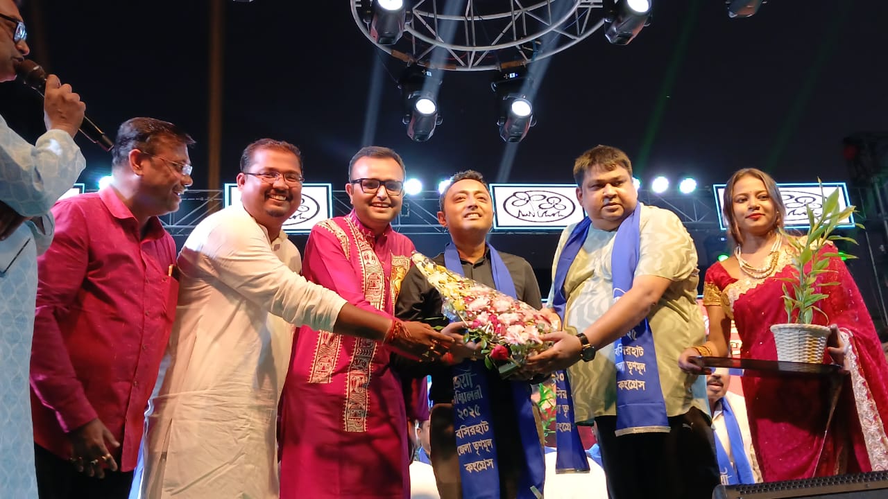 বসিরহাট : "এসআইআর-এর নামে কোনো ভোটারকে বাদ দিতে দেব না। এটা আমাদের অনন্ত লড়াই।" বিজয়া সম্মিলনীর মঞ্চ থেকে দলীয় নেতা ও কর্মীদের উদ্দেশ্যে বার্তা বসিরহাটের তৃণমূলের জেলা সভাপতির। বৃহস্পতিবার বসিরহাট সাংগঠনিক জেলা তৃণমূল কংগ্রেসের উদ্যোগে ভ্যাবলা হাই স্কুলের মাঠে অনুষ্ঠিত হয় এক বর্ণাঢ্য বিজয়া সম্মিলনী। উপস্থিত ছিলেন, বিধাননগর পুরসভার কাউন্সিলর তথা বিধায়ক অদিতি মুন্সীর স্বামী দেবরাজ চক্রবর্তী। উত্তর ২৪ পরগণা জেলা আরটিএ সদস্য সুরজিৎ মিত্র (বাদল), সাংগঠনিক জেলার চেয়ারম্যান স্বরোজ বন্দ্যোপাধ্যায়, জেলা যুব সভাপতি সমিক রায় অধিকারী, ও ছাত্র পরিষদের সভাপতি অভিষেক মজুমদার রিকি সহ একাধিক নেতৃত্ব। এদিন দুপুর থেকেই বসিরহাটের হাড়োয়া, সন্দেশখালি, হিঙ্গলগঞ্জ, মিনাখাঁ, বাদুড়িয়া সহ মহকুমার বিভিন্ন প্রান্ত থেকে হাজার হাজার কর্মী ও সমর্থক মিছিলের ঢেউ তুলে হাজির হন এই সম্মেলনে। মাঠ জুড়ে তৃণমূলের পতাকা, ঢাক-ঢোল আর স্লোগানে উৎসব মুখর হয় পরিবেশ। নেতাদের বক্তব্যে উঠে আসে রাজ্যের উন্নয়নের বার্তা ও সংগঠনের ভবিষ্যৎ রণনীতি। এদিনের বিজয়া সম্মেলন থেকেই আগামী ছাব্বিশের নির্বাচনের জন্য দলীয় কর্মীদের একযোগে প্রস্তুতির আহ্বান জানান জেলা নেতৃত্ব। তৃণমূল কংগ্রেসের জেলা সভাপতি বুরহানুল মুকাদ্দিম লিটন বলেন, "বিজয়ার শুভক্ষণে আমরা ঐক্যের বার্তা দিচ্ছি। আগামী নির্বাচনে বসিরহাট আবারও মা-মাটি-মানুষের পথে এগিয়ে যাবে। এসআইআর এর নাম করে কোনো ভোটারকে আমরা বাদ দিতে দেব না। এটা আমাদের অনন্ত লড়াই।" ১০ হাজার কর্মী সমর্থক নিয়ে কয়েক কিলোমিটার মিছিল করে এই বিজয় সম্মেলনীতে অংশ নেন বসিরহাট ১ নং ব্লকের যুবর সভাপতি সরিফুল মন্ডল। এছাড়াও অন্যান্য ব্লকের যুব তৃণমূল কংগ্রেসের উপস্থিতি ছিল চোখে পড়ার মতো। এদিনের কর্মসূচিতে নতুন প্রজন্ম যে তৃণমূলকে বেছে নিয়েছে তা আর বলার অপেক্ষা রাখে না। সারা মাঠ জুড়ে জনজোয়ার ও উৎসবের আবহে দিনভর মুখর ছিল বসিরহাট। বিজয়া মিলন উপলক্ষে তৃণমূলের এই সম্মিলনী যেন পরিণত হয় জনসংযোগ ও সংগঠন দৃঢ় করার এক মহাউৎসবে।