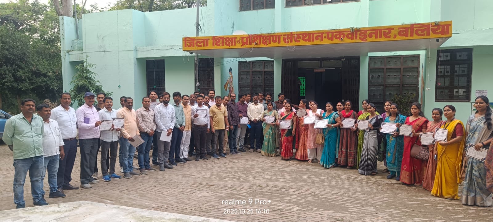 संजीव सिंह बलिया!राज्य परियोजना कार्यालय उत्तर प्रदेश द्वारा वर्तमान में बेसिक शिक्षा परिषद के नियंत्रणाधीन कक्षा 1 से 5 तक कार्यरत शिक्षकों को मजबूती प्रदान किए जाने के उद्देश्य से एकीकृत संपूर्ण प्रशिक्षण का आयोजन उत्तर प्रदेश के समस्त जिला शिक्षा एवं प्रशिक्षण संस्थानों में गतिमान है। इस प्रशिक्षण के प्रथम चरण में जनपद के कुल 1500 अध्यापकों को प्रशिक्षित किया जाना है जिसमें उन्हें शिक्षण के साथ-साथ बच्चों के सर्वांगीण विकास हेतु विभिन्न प्रकार के आयामों से परिचित कराया जा रहा है। आज इस प्रशिक्षण के दसवें बैच के समापन पर शिक्षकों को संबोधित करते हुए संस्थान के प्राचार्य /उप शिक्षा निदेशक शिवम पांडेय ने शिक्षकों के प्रदर्शन को सराहते हुए बताया कि वर्तमान में बेसिक शिक्षा परिषद के अंतर्गत कार्यरत शिक्षक विभिन्न प्रतियोगी स्तरों को पार करते हुए नियुक्त हो रहे हैं तथा उनके अंदर सीखने सिखाने की जो ललक दिखाई पड़ती है उससे परिषदीय विद्यालय में अध्यनरत बच्चे निश्चित रूप से समय अंतर्गत निपुण बन जाएंगे। उन्होंने अपने उद्बोधन में बताया कि बच्चों को संस्कार युक्त तथा दीर्घकालिक शिक्षा प्रदान किए जाने की दृष्टिगत एनसीईआरटी के पाठ्यक्रम पर आधारित विषय वस्तुओं से बच्चों का सृजन किया जाना फलदाई और लाभकारी साबित हो रहा है। जिला शिक्षा एवं प्रशिक्षण संस्थान के शिक्षक शिक्षा प्रशिक्षण कार्यक्रम के प्रभारी डॉक्टर मृत्युंजय सिंह द्वारा अपने उद्बोधन में बताया गया कि प्रत्येक शिक्षक अलौकिक प्रतिभा का धनी होता है तथा उनको इस प्रशिक्षण के माध्यम से उनकी शक्तियों के बेहतर प्रदर्शन हेतु सही क्रम तथा दिशा प्रदान किए जाने की प्रेरणा मिलती है। एकीकृत प्रशिक्षण के प्रभारी रविरंजन खरे द्वारा विगत जून माह से लगातार इस प्रशिक्षण की गुणवत्ता को बनाए रखते हुए शिक्षकों की समय से प्रतिभाग एवं प्रार्थना सभा के आयोजन से लेकर के प्रतिवेदन तथा प्रस्तुतीकरण को बहुत ही सुंदर तरीके से सजाया जा रहा है जिससे शिक्षकों में अति उत्साह देखने को मिल रहा है। जिला शिक्षा एवं प्रशिक्षण संस्थान के प्रवक्ता डॉक्टर जितेंद्र गुप्ता, डा अशफाक, राम प्रकाश, देवेंद्र सिंह ,अविनाश सिंह, राम यश योगी, हलचल चौधरी, किरण सिंह, डॉक्टर शाइस्ता अंजुम , भानु प्रताप सिंह,जानू राम तथा अन्य द्वारा विभिन्न कौशलों से प्रशिक्षण में उपस्थित शिक्षकों को रूबरू कराया जा रहा है। 10 वें बैच के इस प्रशिक्षण में विभिन्न शिक्षा क्षेत्र के अध्यापकों को उनके उत्कृष्ट प्रदर्शन के लिए विशेष रूप से सम्मानित किया गया जिनमें प्रमुख रूप से पंदह शिक्षा क्षेत्र के प्राथमिक विद्यालय डाकिनगंज के अंकुर राय तथा कंपोजिट विद्यालय एकईल के मि