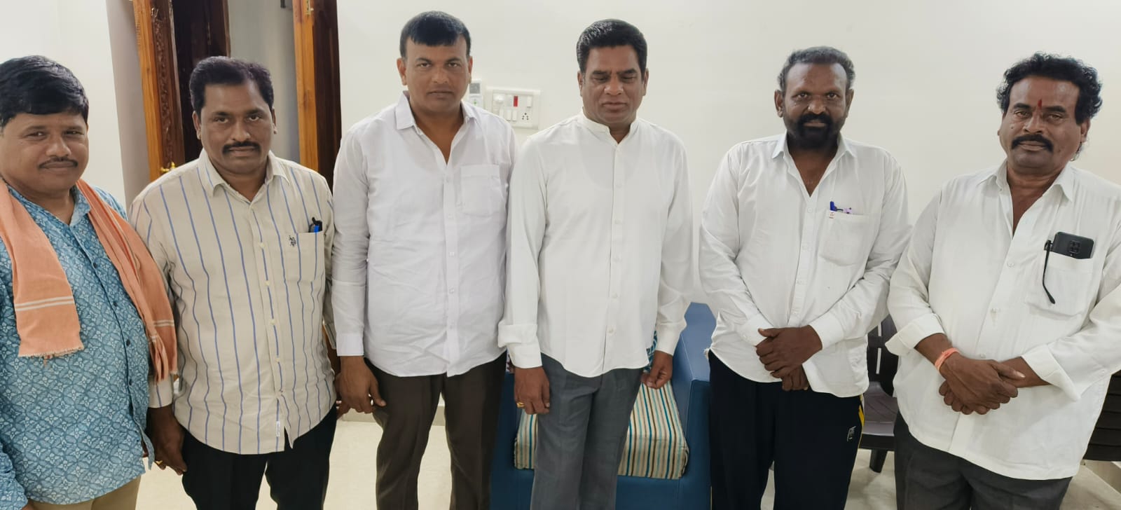 కొమురం భీం ఆసిఫాబాద్ జిల్లా : కాగజ్ నగర్ పట్టణ కేంద్రం లోనీ ఎమ్మెల్సీ నివాసంలో గురువారం రోజున ఉమ్మడి అదిలాబాద్ జిల్లా స్థానిక సంస్థల ఎమ్మెల్సీ దండే విఠల్ ని మర్యాద పూర్వకంగా కలిసిన కాంగ్రెస్ నాయకుడు సత్యనారాయణ గౌడ్ మర్యాద పూర్వకంగా కలిశారు. ఈ సందర్భంగా పలు సమస్యలను ఆయన దృష్టికి తీసుకురాగా ఎమ్మెల్సీ సానుకూలంగా స్పందించి సమస్యల పరిష్కారానీకి తనవంతు కృషి చేస్తానని హామీ ఇచ్చారు. ఈ కార్యక్రమంలో టిపిసిసి సభ్యులు అర్షద్ హుస్సేన్ కొండపల్లి మాజీ సర్పంచ్ సుధాకర్ కోట శంకర్ పెంటయ్య తదితరులు పాల్గొన్నారు.