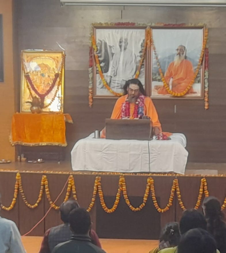 चारो आश्रमो का विस्तृत विवेचन करते हुए पूज्य स्वामी अभेदानंद सरस्वती जी ने कहा कि गृहस्थ आश्रम में श्रद्धा विनय और गुरु आज्ञा के पालन से कर्तव्यपरायणता तथा आदर्श जीवन के संस्कार विकसित होते है।ब्रह्मचर्य आश्रम व्यक्ति को संयम और सेवा का पाठ पढ़ाता है।वही गृहस्थ जीवन में कर्मयोग का पालन, कर्तव्यनिष्ठा और ईश्वर के प्रति प्रसन्नता का भाव मनुष्य की उन्नति का आधार बनता है।