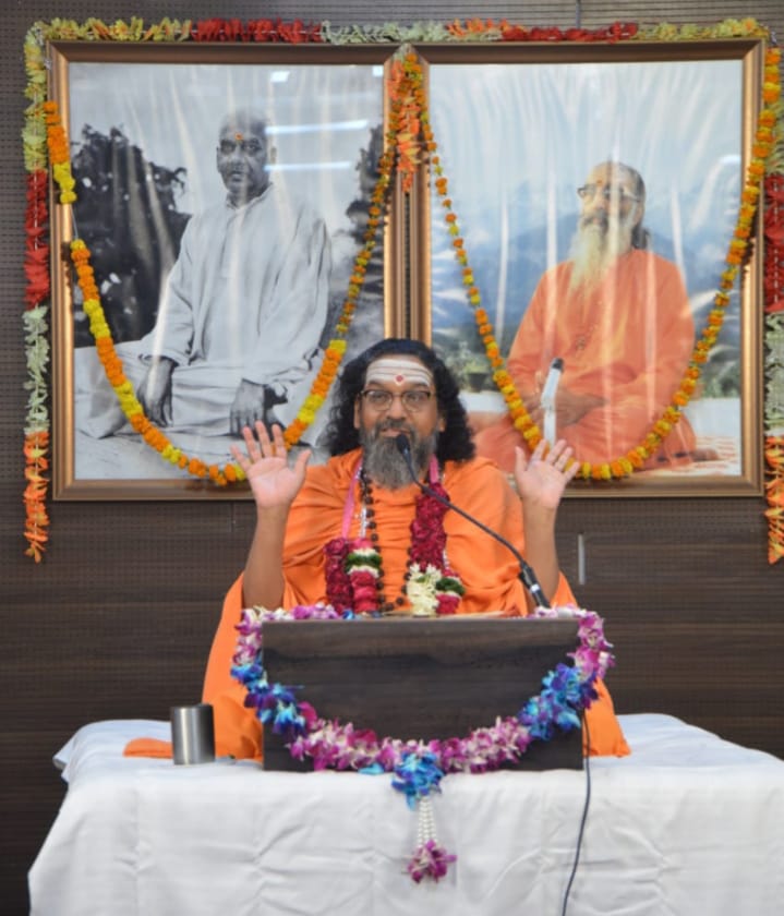 कर्तव्य की सिद्धि ही मन को निश्चिंत कर आत्मचिंतन की दिशा में अग्रसर करती है।उन्होंने कहा कि शास्त्र हमे केवल कर्म के लिए प्रेरित नहीं करते बल्कि कर्म के माध्यम से सभी कर्तव्यों से मुक्ति का मार्ग दिखाते हैं।जप पूजा ध्यान ये सब भी अंततः हमें निर्गुण निराकार ब्रह्म में प्रतिष्ठित करने की साधन मात्र हैं।यही आत्मा है यही ब्रह्म है और यही उपनिषदों का परम उद्देश्य है।स्वामी ने याज्ञवल्क्य और मैत्रेयी संवाद का उदाहरण देते हुए कहा कि जो आत्मा को जान लेता है,वही अमरत्व को प्राप्त कर लेता है।उन्होंने कहा कि“आत्मनः तु कामाय सर्वं प्रियम् भवति अर्थात् सभी प्रेम का मूल कारण आत्मा ही है।