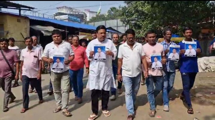 নিজস্ব সংবাদদাতা :আজ তৃণমূল কংগ্রেসের সর্বভারতীয় সাধারণ সম্পাদক তথা লোকসভায় তৃণমূল কংগ্রেসের দলনেতা অভিষেক বন্দ্যোপাধ্যায়ের জন্মদিন।তার দীর্ঘায়ু কামনা করে উত্তর ২৪ পরগনার ব্যারাকপুর হনুমান মন্দিরের পুজো দিলেন ব্যারাকপুরের তৃণমূল কংগ্রেস নেতৃত্ব। এদিন সকল নেতৃবৃন্দকে দেখা গেল অভিষেক বন্দ্যোপাধ্যায় ছবি হাতে নিয়ে ব্যারাকপুর রেলস্টেশনের এক নম্বর প্ল্যাটফর্মে থাকা হনুমান মন্দিরে পুজো দিতে। উপস্থিত ছিলেন ব্যারাকপুর শহর তৃণমূল কংগ্রেস সভাপতি তথা ব্যারাকপুর পৌরসভার ২ নম্বর ওয়ার্ডের পৌরপিতা সম্রাট তপাদার ব্যারাকপুর শহর আইএনটিটিইউসি সভাপতি শুভেন্দু চৌধুরী,ব্যারাকপুর রেলওয়ে আইএনটিটিইউসি হকার্স ইউনিয়নের সভাপতি রাজু ঘোষ, তৃণমূল কংগ্রেস নেতা তারক দাস, অভিজিৎ চক্রবর্তী, আকাশ ঘোষ সহ অন্যান্য তৃণমূল কংগ্রেস নেতৃত্ব। ব্যারাকপুর পৌরসভার ২ নম্বর ওয়ার্ডের পৌরপিতা সম্রাট তপাদার জানান," অভিষেক বন্দ্যোপাধ্যায়ের সুস্থ জীবন এবং দীর্ঘায়ু কামনা করলাম সবাই "।
