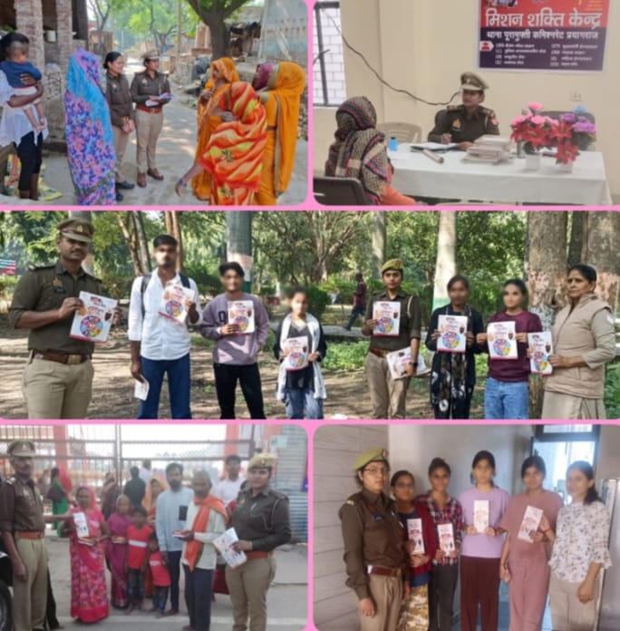 संजय द्विवेदी प्रयागराज।उत्तर प्रदेश शासन द्वारा महिलाओ बालिकाओ के सुरक्षार्थ व स्वालंबन हेतु चलाये जा रहे मिशन शक्ति अभियान (फेज-5.0)के तहत पुलिस आयुक्त व अपर पुलिस आयुक्त के निर्देशन में व पुलिस उपायुक्त नगर व अपर पुलिस उपायुक्त नगर के कुशल पर्यवेक्षण में आज दिनांक 12.11.2025 को नगर जोन के समस्त थानो पर नियुक्त महिला पुलिसकर्मियो द्वारा अपने-अपने थाना क्षेत्रान्तर्गत आयोजित कार्यक्रम व जागरूकता रैली में बालिकाओ को जागरुक करने के साथ ही महिला संबंधित समस्याओं के निस्तारण कराने के सम्बन्ध में जागरुक किया गया।महिलाओ एवं बालिकाओ के साथ जुड़ कर उन्हें सशक्त एवं सुरक्षित वातावरण देने का प्रयास किया जा रहा है।साथ ही मिशन शक्ति 5.0 अभियान के अन्तर्गत नगर जोन के सभी थानो द्वारा प्रमुख बाजारो कस्बा चौराहो स्कूलो कॉलेजो धार्मिक स्थलो तथा अन्य महत्वपूर्ण स्थानो पर महिला पुलिस कर्मियो द्वारा शासन व पुलिस विभाग द्वारा महिलाओ की सुरक्षा और सशक्तिकरण स्वावलम्बन हेतु चलाई जा रही विभिन्न विभागो की योजनाओं जैसे मुख्यमंत्री कन्या सुमंगला योजना निराश्रित महिला पेंशन योजना उ०प्र० राज्य ग्रामीण आजीविका मिशन राष्ट्रीय पोषण योजना मुख्यमंत्री सामूहिक विवाह योजना बेटी बचाओ-बेटी पढ़ाओ प्रधानमंत्री उज्जवला योजना पी०एम० स्वानिधि योजना पी०एम० सम्मान निधि योजना वन स्टाप सेन्टर आयुष्मान योजना सुरक्षित मातृत्व आश्वासन सुमन योजना महिला शक्ति केन्द्र योजना मुख्यमंत्री अभ्युदय योजना कन्या सुमंगला योजना तथा पुलिस विभाग से सम्बंधित विभिन्न हेल्पलाइन नम्बरो वीमेन पावर लाइन 1090 पुलिस आपातकालीन सेवा-112 सी०एम०हेल्प लाइन 1076 स्वास्थ्य सेवा हेल्प लाइन-102 एम्बुलेस सेवा-108 महिला हेल्प लाईन-181साइबर क्राइम हेल्पलाइन 1930 आदि के बारे मे पम्पलेट बांटकर जागरूक किया गया।