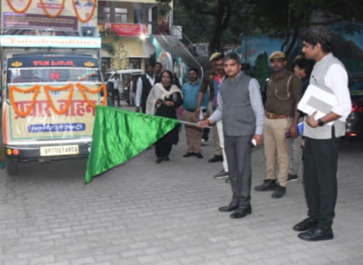 संजय द्विवेदी प्रयागराज।एग्रीस्टैक योजनान्तर्गत फार्मर रजिस्ट्री कराने हेतु कृषको को जागरूक करने के उद्देश्य एवं फार्मर रजिस्ट्री कार्य की प्रगति में तेजी लाने हेतु आज दिनांक 12 नवम्बर 2025 को जिलाधिकारी मनीष कुमार वर्मा के द्वारा प्रचार वाहनो को हरी झंडी दिखाकर रवाना किया गया जो जनपद के समस्त ग्राम पंचायतो एवं राजस्व ग्रामो मे कृषको को जागरूक कर एवं कृषको के मध्य पम्पलेट का भी वितरण किया जाएगा।
