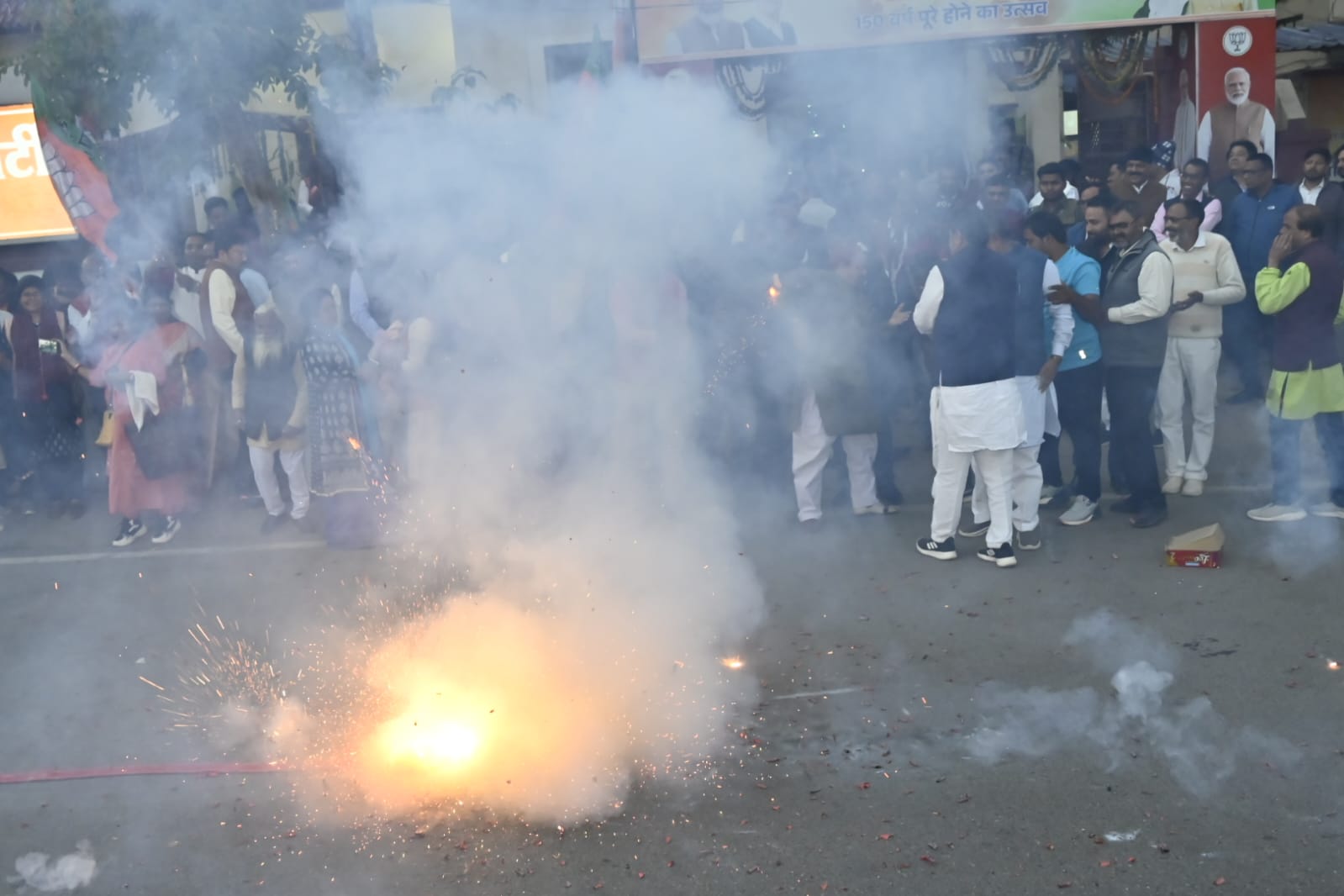 पार्टी प्रदेश कार्यालय में प्रदेश अध्यक्ष एवम नेता प्रतिपक्ष बाबूलाल मरांडी ,कार्यकारी अध्यक्ष सांसद आदित्य साहू,प्रदेश संगठन महामंत्री कर्मवीर सिंह के साथ प्रदेश पदाधिकारीगण,रांची महानगर अध्यक्ष वरुण साहू, सहित सैकड़ों कार्यकर्ताओं ने पटाखे छोड़ कर और लड़ू बांट खुशियां मनाई,बधाई शुभकामनाएं दी। पूरा कार्यालय भारत माता की जय, के साथ गूंज उठा।