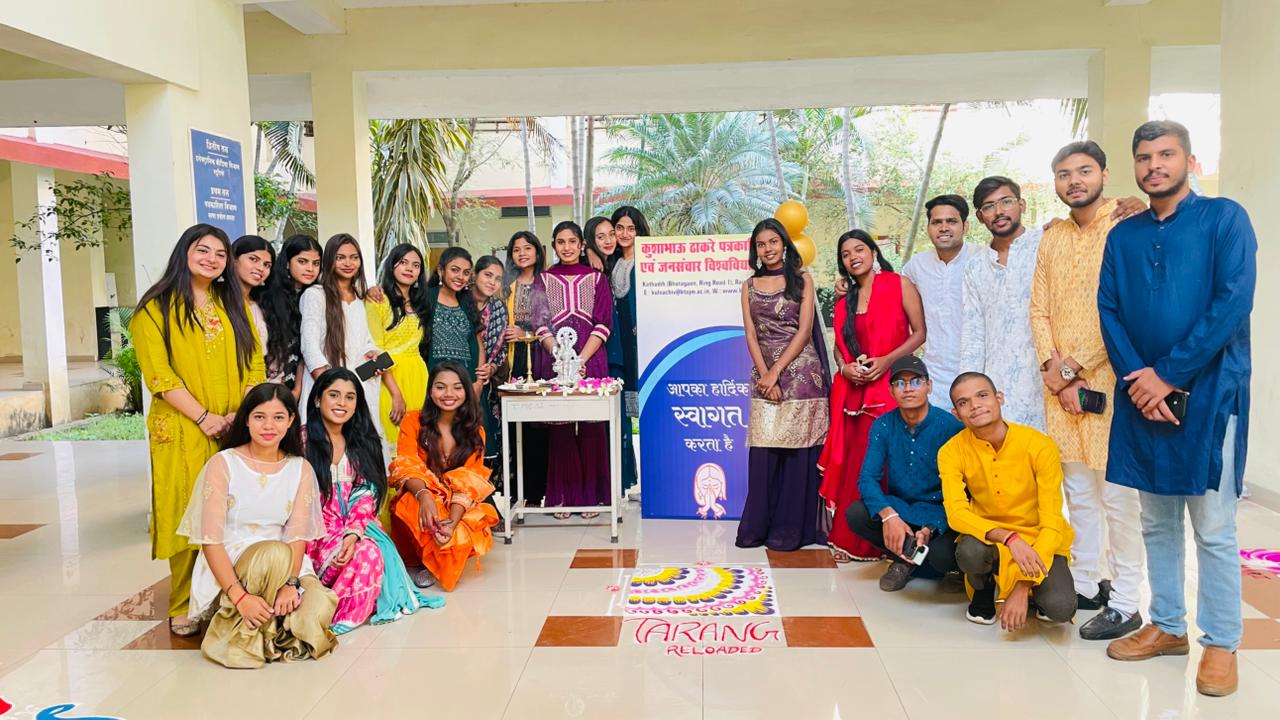 रायपुर- कुशाभाऊ ठाकरे पत्रकारिता एवं जनसंचार विश्वविद्यालय के जनसंचार विभाग द्वारा आयोजित तीन दिवसीय महोत्सव “तरंग 2025” के दूसरे दिन परिसर रेट्रो और बॉलीवुड थीम के रंग में रंगा दिखाई दिया। विद्यार्थियों ने पुराने दौर के फैशन, क्लासिक बॉलीवुड किरदारों और प्रतिष्ठित फिल्मी व्यक्तित्वों की झलक पेश कर पूरे वातावरण को उत्साह और रचनात्मकता से भर दिया।