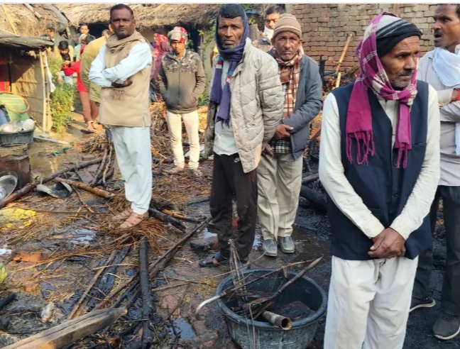 गोंडा।जिले के देहात कोतवाली थाना क्षेत्र के सालपुर चौकी के परसा सोहसा ग्राम पंचायत के परसा गांव में बीती रात अज्ञात कारणों से आग लग गयी।इस घटना में घर के अंदर बंधी एक भैंस की जलकर मौत हो गयी और लाखों रुपए का घरेलू सामान जलकर खाक हो गया।पीड़ित गृहस्वामी बालकराम पुत्र पुल्लू ने बताया कि देर रात लगभग एक बजे घर के सभी लोग सो रहे थे कि तभी उनके फूस के घर में आग लग गयी।जिसमें घर में बंधी लगभग 80000 रुपये कीमत की दुधारू भैंस आग की चपेट में आ गयी।आग की लपटें तेज होने पर भैंस छटपटाने और चिल्लाने लगी जिससे मेरी नींद खुली और मैंने भैंस को बचाने का प्रयास किया परन्तु सफल नहीं हो सका।शोर सुनकर गांव के लोग मौके पर पहुंचे और आग को बुझाने का प्रयास किया लेकिन तब तक भैंस मर चुकी थी।बालकराम ने बताया कि आग में पशु चारा,भूसा,अनाज (धान,गेहूं),रजाई और कपड़े सहित घर का सारा सामान जलकर राख हो गया।पीड़ित ने बताया कि इस ठंड में उनके पास न तो अनाज बचा है और न ही कपड़े,जिससे उनके छोटे छोटे बच्चों के लिए रहने और खाने की समस्या खड़ी हो गयी है।बताते चलें कि भैंस को बचाने के चक्कर में बालकराम भी मामूली रूप से झुलस गया है।घटना के संबंध में जानकारी देते हुए पूर्व प्रधान मायाराम वर्मा ने बताया कि पीड़ित परिवार को हर संभव सहायता प्रदान की जाएगी।उन्होंने बताया कि घटना की सूचना क्षेत्रीय लेखपाल को दे दिया गया है।