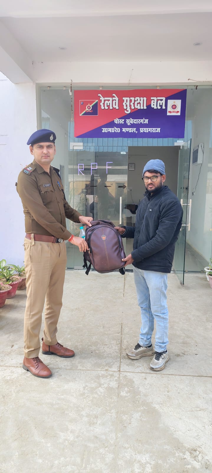 संजय द्विवेदी,प्रयागराज।रेलवे सुरक्षा बल द्वारा चलाए जा रहे“ऑपरेशन अमानत”के अन्तर्गत एक यात्री का ट्रेन में छूटा हुआ पिट्ठू बैग सुरक्षित रूप से बरामद कर उसके मालिक को सुपुर्द किया गया। 15 दिसम्बर 2025 को प्रयागराज हेल्पलाइन से सूचना प्राप्त हुई कि गाड़ी संख्या 20434 डाउन जम्मू मेल में फतेहपुर स्टेशन पर एक यात्री का बैग छूट गया है। प्राप्त सूचना के आधार पर रेलवे सुरक्षा बल सूबेदारगंज के कांस्टेबल अशोक कुमार मिश्रा द्वारा तत्काल ट्रेन की जाँच की और ट्रेन के जनरल कोच से एक पिट्ठू बैग बरामद किया। इस सम्बन्ध में शिकायतकर्ता यात्री अजय कुमार को बैग मिलने की सूचना दी गई। दिनांक 15 दिसम्बर 2025 को यात्री अजय कुमार रेलवे सुरक्षा बल पोस्ट सूबेदारगंज पर उपस्थित हुए जहां उन्होने अपने पिट्ठू बैग की पहचान की।बैग खोलकर जांच करने पर उसमें रखा सामान सही पाया गया।आवश्यक दस्तावेज प्रस्तुत करने के पश्चात बैग यात्री को सुपुर्द कर दिया गया। पिट्ठू बैग एवं उसमें रखे सामान की अनुमानित कीमत लगभग ₹3,000 है।रेलवे सुरक्षा बल यात्रियो से अपील करता है कि किसी भी समस्या या खोए हुए सामान की सूचना तत्काल रेलवे हेल्पलाइन 139 पर दे ताकि समय रहते सहायता प्रदान की जा सके।