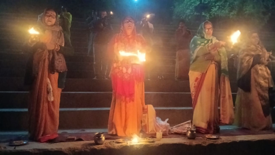 गंगा बचाओ सेवा समिति द्वारा पूर्णिमा पर ओमघाट में गंगा आरती