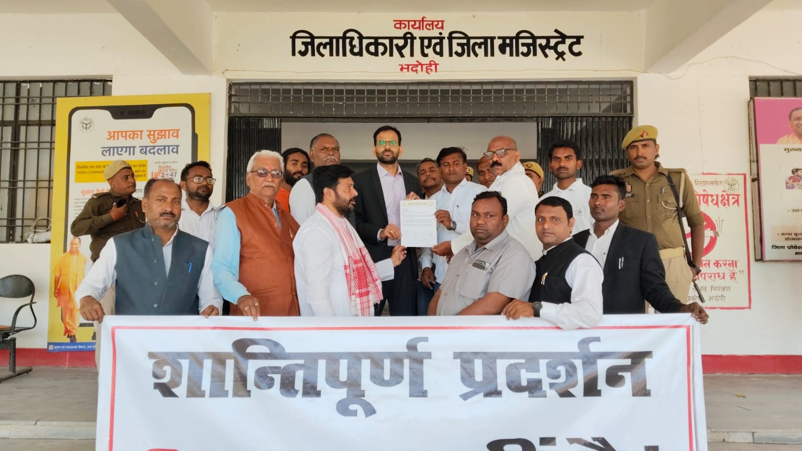 शंकराचार्य पर FIR होने पर कांग्रेस का कलेक्ट्रेट पर प्रदर्शन:भदोही में राष्ट्रपति-प्रधानमंत्री को संबोधित ज्ञापन DM को सौंपा