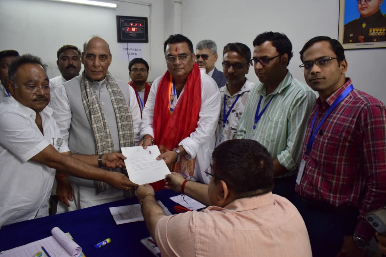 *প্রবীর রায়:* উত্তর ২৪ পরগনার ব্যারাকপুর স্টেশনের নিকটবর্তী বিজয় সংকল্প মঞ্চে ব্যারাকপুরের ৭ বিধানসভার প্রার্থীকে নিয়ে সভা করেন প্রতিরক্ষা মন্ত্রী রাজনাথ সিং। মঙ্গলবারের এই সভা থেকে তিনি বলেন, "ব্যারাকপুরের মাটি বঙ্কিমচন্দ্রের মাটি। এখানকার মানুষ লড়াই সংগ্রামে বরাবর এগিয়ে থাকে। এবার বাংলায় পরিবর্তন নিশ্চিত।" এরপর রাজনাথ সিং ৭ প্রার্থীকে নিয়ে রথে চড়ে ব্যারাকপুর প্রশাসনিক ভবনে আসেন। এদিন মনোনয়ন জমা দিলেন বীজপুর, নৈহাটী, ভাটপাড়া, জগদ্দল, নোয়াপাড়া ও ব্যারাকপুর কেন্দ্রের বিজেপি প্রার্থীরা।
