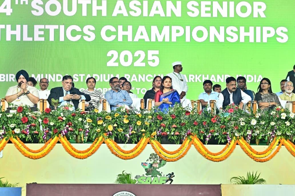 रांची: मुख्यमंत्री श्री हेमन्त सोरेन ने आज बिरसा मुंडा फुटबॉल स्टेडियम मोरहाबादी में चौथी सैफ सीनियर एथलेटिक्स चैंपियनशिप-2025 का विधिवत आगाज किया। इस अंतरराष्ट्रीय प्रतियोगिता में दक्षिण एशिया के विभिन्न देश— भारत, बांग्लादेश, भूटान, मालदीव, नेपाल एवं श्रीलंका के खिलाड़ी हिस्सा ले रहे हैं।