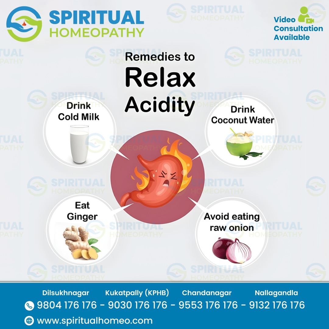 Spiritual Homeopathy offers expert homeopathy in Hyderabad for acidity and digestive health. With clinics in KPHB, Dilsukhnagar, Chandanagar, and Nallagandla, our experienced doctors focus on holistic, patient-centered care. We aim to restore natural digestive balance, improve overall wellness, and provide long-term relief. Spiritual Homeopathy is trusted for safe, gentle, and effective homeopathy in Hyderabad.
