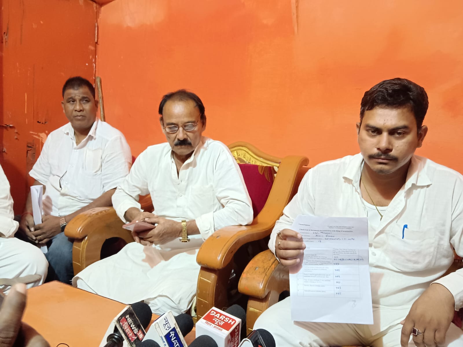 प्रेस कांफ्रेंस के दौरान राष्ट्रवादी कांग्रेस पार्टी के नेताओं ने कहा कि फॉर्म में 'शून्य और नही' का प्रावधान देकर नामांकन को रद्द कर दिया गया है जबकि उन्हें सुधारने का भी मौका नहीं दिया गया। नेताओं ने कहा कि फॉर्म में (शून्य और नही) प्रावधान पर नामांकन रद्द किया गया है. इनके विरुद्ध आयोग के पास जाऊंगा या हाई कोर्ट का भी मामला बनता है. स्थानीय विधायक जो की बाहुबली है उसके साथ साथ गांठ रहता है. उन्होंने मांग किया है कि डीएम और कमिश्नर इसकी जांच कर टेकारी एसडीओ पर तत्काल कार्रवाई करें. उन्होंने कहा कि अगर कार्रवाई नहीं होती है तो जिले के सभी अधिकारियों पर हाईकोर्ट में रिट याचिका दायर करूंगा, साथ ही आयोग के पास जाकर अनशन करूंगा, उन्होंने कहा कि लोकतंत्र की हत्या की गई है।