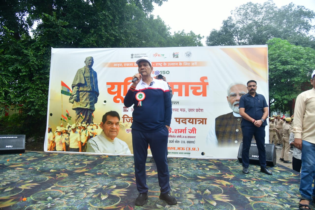इसके उपरांत मंत्री श्री शर्मा ने डॉ. भीमराव अंबेडकर स्पोर्ट्स स्टेडियम, मऊ में आयोजित सरदार पटेल की 150वीं जयंती समारोह में भाग लिया। उन्होंने दीप प्रज्वलित कर “रन फॉर यूनिटी” कार्यक्रम का शुभारंभ किया।कार्यक्रम में भारी संख्या में विद्यार्थी, एनसीसी कैडेट्स, स्काउट्स, स्वयंसेवी संस्थाओं के सदस्य एवं नागरिक शामिल हुए। सभी ने एकता दौड़ में उत्साहपूर्वक भाग लेकर राष्ट्रीय एकता, अखंडता और भाईचारे का संदेश दिया।